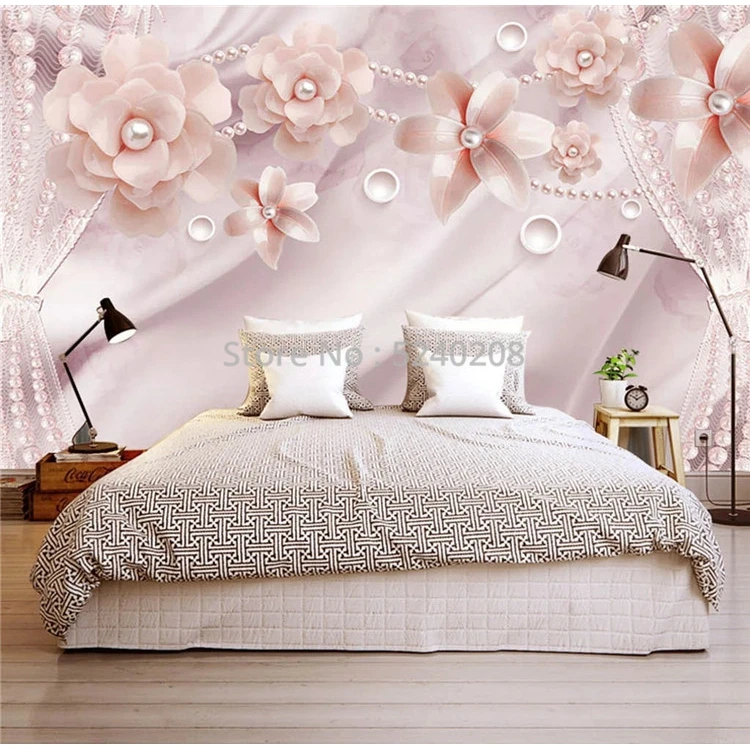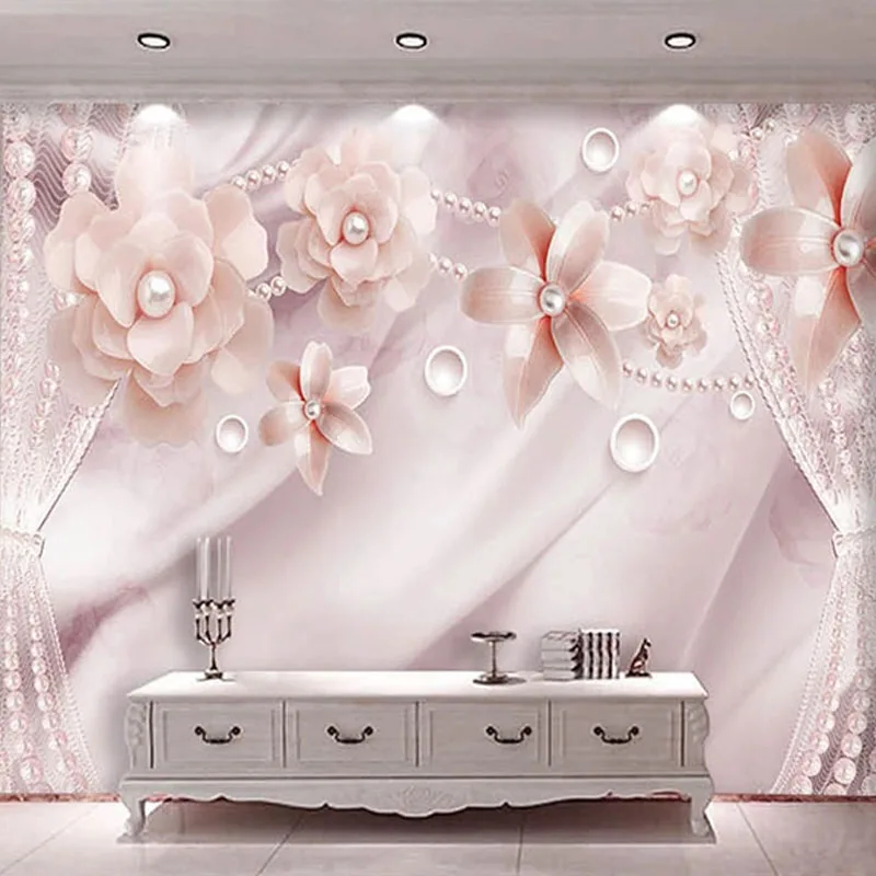 3D-обои на заказ, современные фотообои с розовыми жемчужинами и цветами, настенные фрески для гостиной, спальни, домашний декор, настенные наклейки 3D Самоклеящиеся