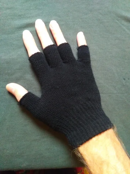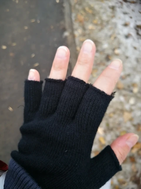 Хорошие перчатки на средних размеров руку. На обрезанных частях слегка торчат нитки. Сами перчатки тонковаты, но для меня это удобный вариант, так как руки из карманов достаю редко.