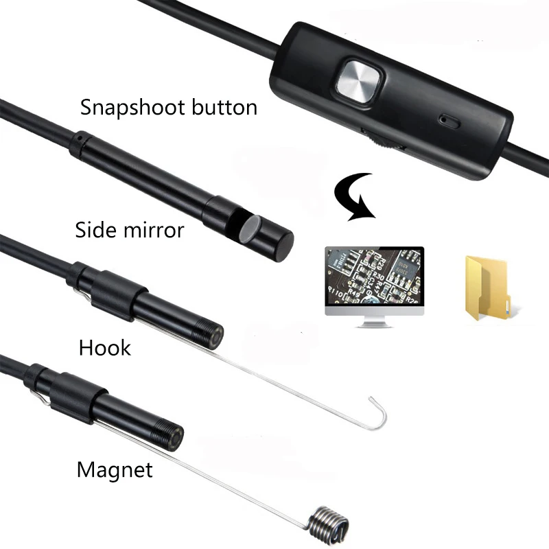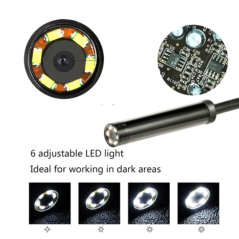 Особенности:1. Благодаря 1,3 миллионам пикселей высокой четкости изображение четкое и легко определить.2. Оснащен 6 светодиодный дами, яркость можно регулировать в соответствии с потребностями, удобно и практично.3. Класс водонепроницаемости IP67, легко справляется с различными сложными условиями окружающей среды, такими как влажность, тусклость и вода.4. Компактный и легкий, удобный для переноски, простой в эксплуатации, никаких других инструментов не требуется.5. Подходит для компьютерных систем Android мобильный телефон и XP/W7/W8/VISTA, может быть быстро подключен и использован в среде Wi-Fi.Спецификация:Длина мягкого провода: 2 м/3,5 м/5 мДиаметр линзы: 5,5 ммРазрешение: 640*480Размер датчика: 1/9 дюймаЧастота кадров: 30 кадров в секундуУгол обзора: 70 градусовФокусное расстояние: 3-10 смКласс водонепроницаемости: IP67Экспозиционная лампа автоматическиРабочая температура от 0 до 70 градусовИсточник светильник: 6 Регулируемых светодиодный одовУровень водонепроницаемости: IP67Мощность: 5 В постоянного токаПоддержка компьютера: XP W7 W8 VISTAФормат фото: JPEGФормат видео: MP4Посылка входит:1 * Wi-Fi эндоскоп1 * USB кабель1 * Отражатель1 * крючок1 * водонепроницаемое кольцо1 * Инструкция по эксплуатации