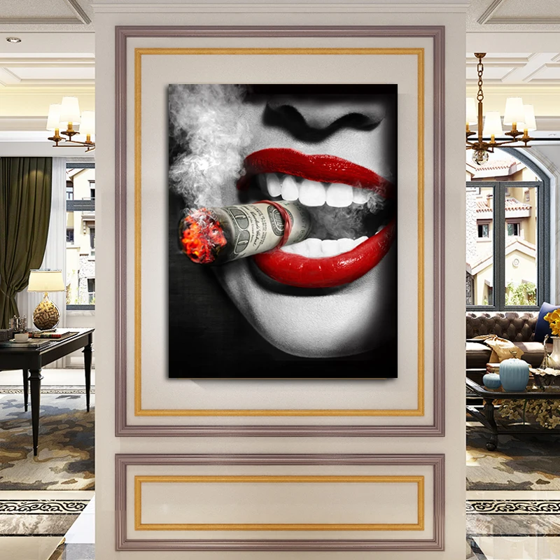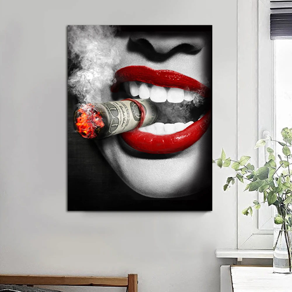 WANGART постер высокого качества с красными сексуальными губами, Женский портсигар, картина маслом, холст, настенные картины для гостиной, домашний декор