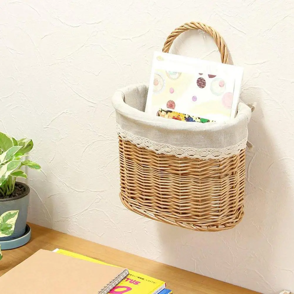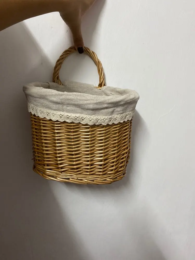 Подвесная плетеная корзина для хранения ручной работы, плетеный органайзер для пикника, хлеба, фруктов, Настенная Корзина для дома, кухни с ручкой