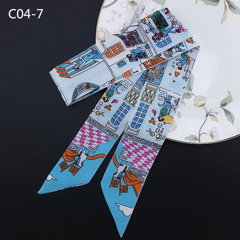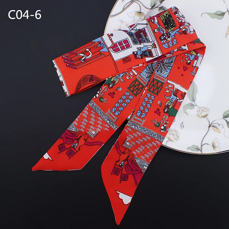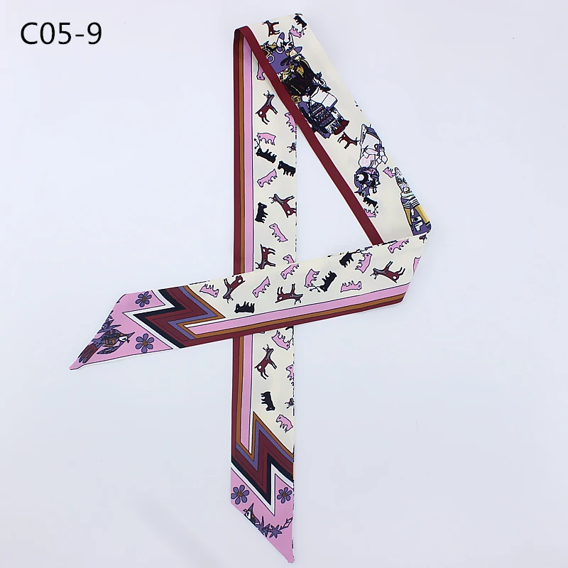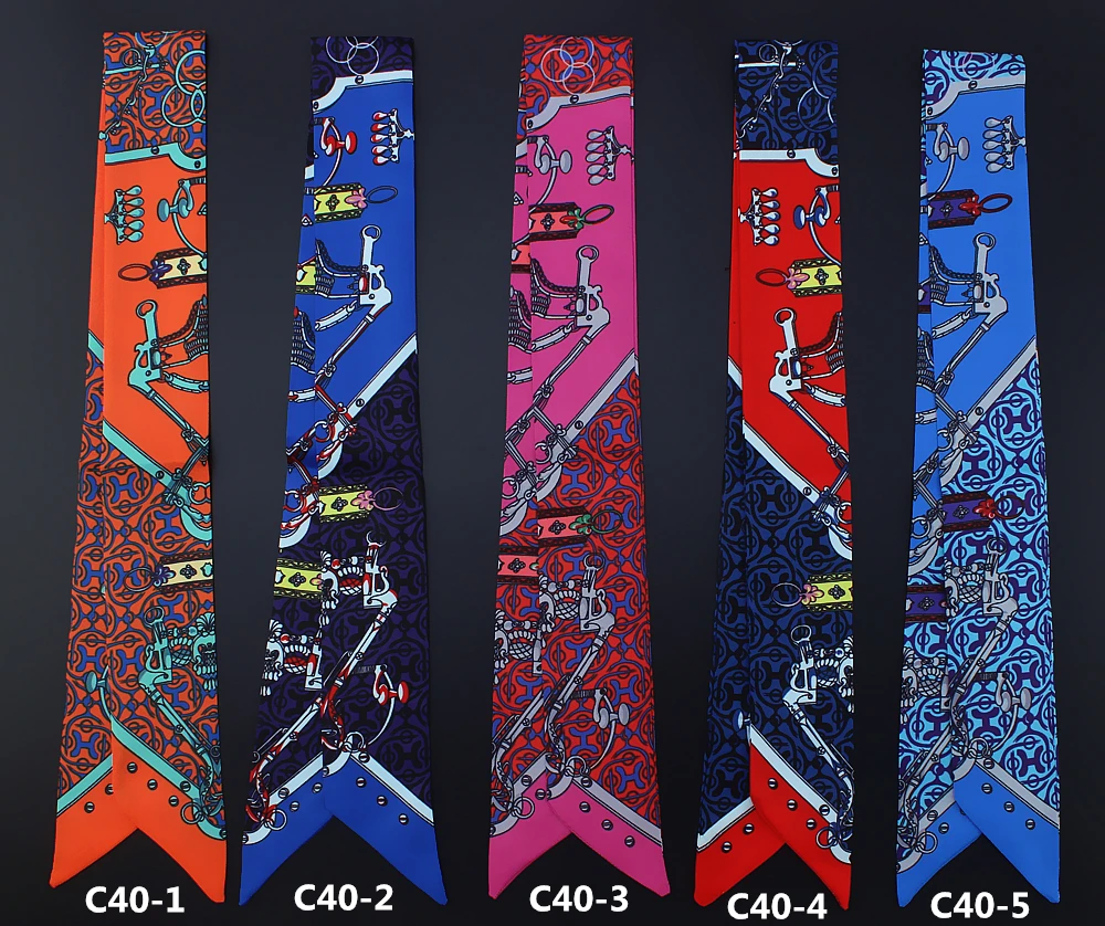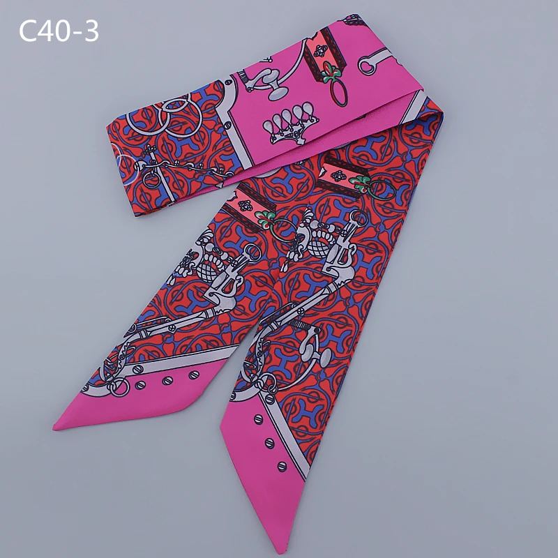Шелковый шарф для женщин с надписью цепочка с принтом сумка ленты брендовый модный головной шарф маленькие длинные узкие шарфы