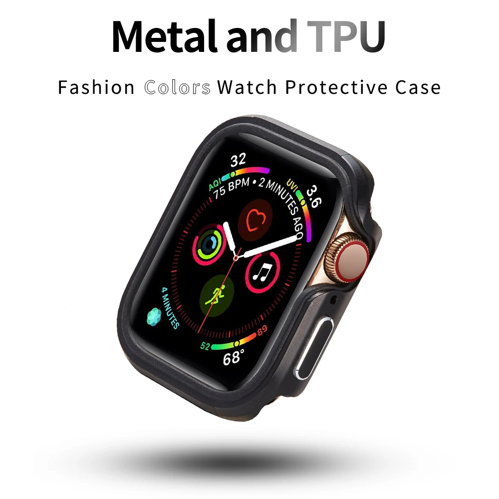 Металлический + ТПУ защитный чехол из сплава для Apple Watch серии 7 6 SE 5 4 Чехол 41 мм 45 мм 44 мм 40 мм бампер для iWatch жесткая рамка