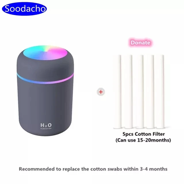 Soodacho Автомобильный увлажнитель воздуха диффузор портативный мини цилиндрическая форма большой емкости 300 мл офисный Автомобильный Мини USB увлажнитель воздуха