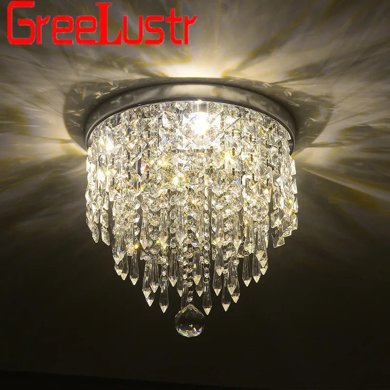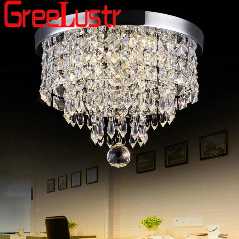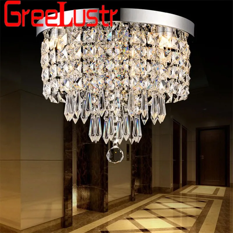 Современная хрустальная Светодиодная потолочная люстра K9, круглый светильник с поверхностным креплением, Хрустальный плафон для гостиной, дизайнерские потолочные лампы