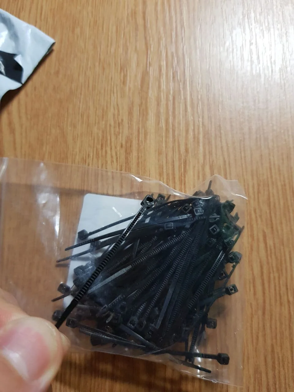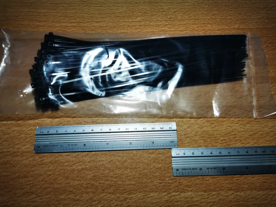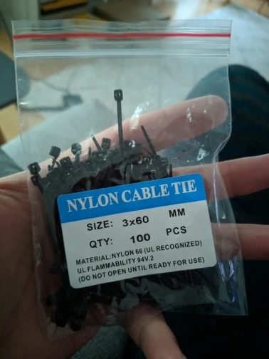 За менее чем 40₽ купил 100 стяжек толщиной 3 мм и длиной 60 мм. Очень дёшево, также удобно для укладывания мелкогабаритных проводов. Имейте ввиду, стяжки очень хлипкие, тонюсенькие, легко сломать, если что-то крупное или острое надо надёжно фиксировать - лучше взять стяжки потолще, на 4 или 5 мм.