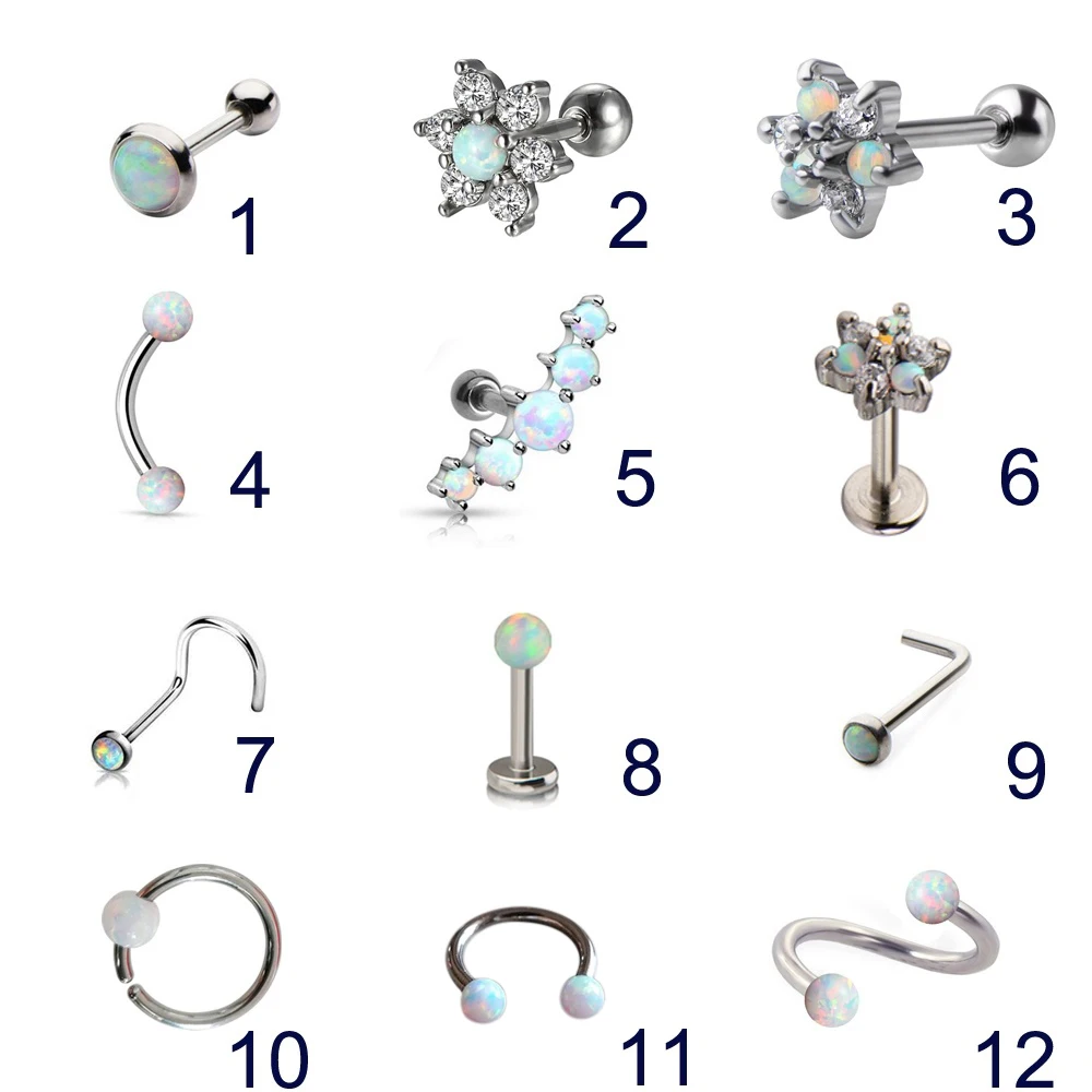 1 шт. Опал Набор для пирсинга Для женщин носа кольца для пирсинга перегородки носа Daith козелка хрящ бровей кольцо шпильки Мода Orelha губная серьга, кольцо CBR, ювелирное изделие для тела
