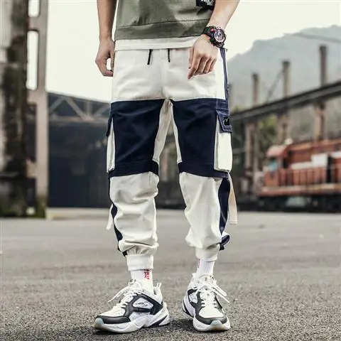 Джоггеры-шаровары с лентами, мужские брюки-карго, уличная одежда 20...