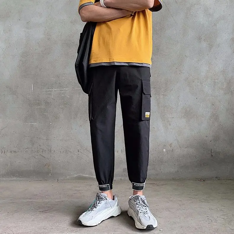 Брюки спортивные мужские, черные, в стиле хип-хоп, весна 2021
