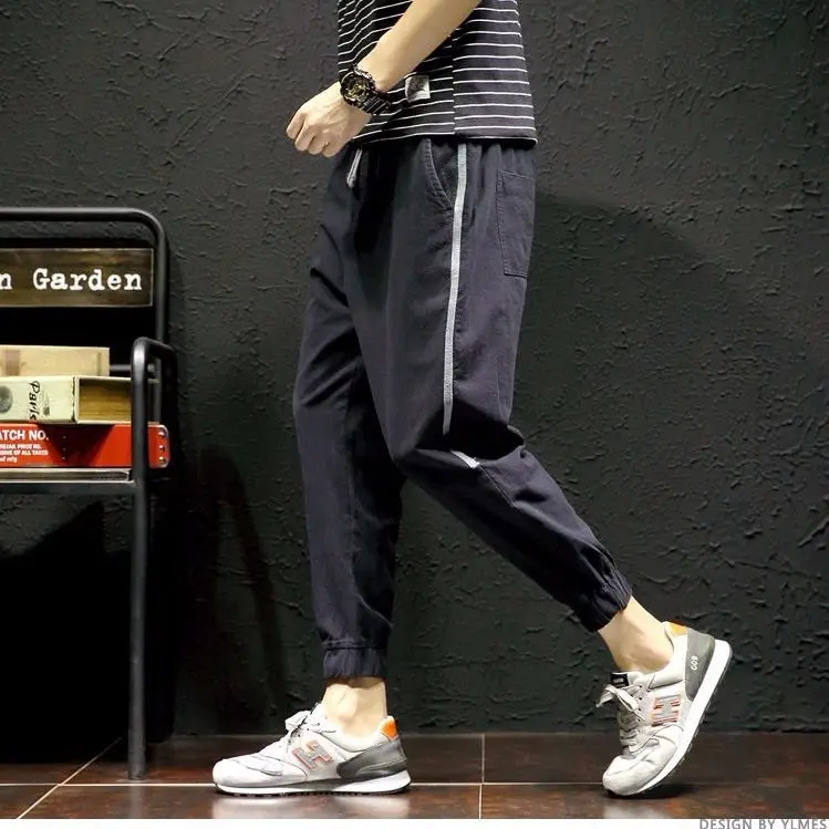 Мужские льняные брюки до щиколотки, спортивные штаны в стиле хип-хо...