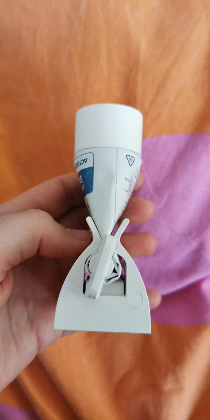 очень удобная штука для выдавливания зубной пасты, немного тонкая там куда нужно просунуть тюбик, но, возможно, это так и должно быть для хорошего выдавливания
