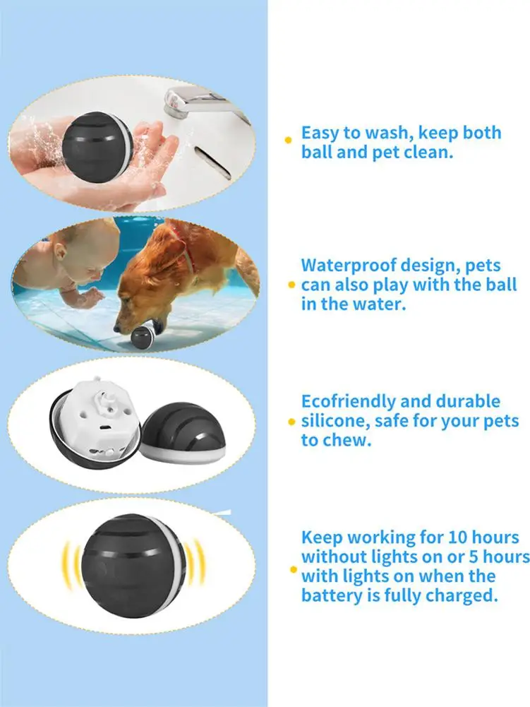 Точки пули:1. Экологически чистый материал: корпус изготовлен из силикона и жесткого АБС, который является экологически чистым, безопасным и надежным. Материал, используемый во внутреннем слое ABS, и твердость относительно высока, больше подходит для домашних животных. Внешний корпус очень прочный.2. Водонепроницаемый дизайн: его можно положить прямо в воду, чтобы играть, и он работает плавно и безопасно. Его можно положить в воду, чтобы играть с питомцем и купать его.3. Зарядка через USB: Зарядка и зарядка занимает около 1 часа, и игра может длиться до 5 часов. Совместим с универсальным зарядным устройством 5 В для смартфона. Во время зарядки есть светильник с индикатором зарядки. При полной зарядке светильник становится синим.4. 360 градусов прокрутка: Встроенный датчик столкновения, может автоматически выскочить при возникновении каких-либо препятствий, а также может рулон свободно на ковре с домашними животными еще больше денег. С яркими огнями, это более привлекательно для животных и внимания. Погоня за домашними животными довольна.5. Защита от укуса и Автоматический Режим сна: мяч будет автоматически спать после 30 минут деятельности, автоматически просыпается через 15 минут, вы также можете прикоснуться, чтобы проснуться.Описание:1. Цвет мяча для прыжков животных разделен на синий, розовый, черный и так далее.2. Мяч для прыжков использует экологически чистый силикон и ABS в качестве основного внешнего корпуса.3. Продукт имеет скрытый светильник белого цвета и Камуфляжный светильник (после открытия корпуса), встроенный переключатель прокрутки.Особенности:1. Внешний вид принимает экологически чистый силикон для различных вариантов цвета.2. Продукт является водонепроницаемым, поэтому вы можете играть в воде и играть на земле.3. Прыгающий мяч автоматически изменит направление, не нужна помощь.4. Используйте мяч для прыжков, чтобы сделать вашего питомца веселым каждый день. Вы можете использовать мяч для прыжков, чтобы обучить питомца играть с питомцем.5. Прыгающий мяч также может свободно кататься на ковре, поэтому питомцы могут выбрать.Характеристики:Рабочая средаРабочая температура: 32 °F ~ 104 °F (0 °C ~ 40 °C).Относительная температура: 10%-90%. (без конденсации)Источник питанияВходная мощность: 5 В постоянного токаТок на входе: 350 мАчИнтерфейс зарядки: Универсальный USB интерфейсНоминальное напряжение: DC 3,4 V-4,2 VБатарея: литиевая Батарея, Номинальная мощность: 3,7 V 300 mAhВремя работы батареи: 5 часов (непрерывная работа без простоя)Упаковочный лист:Мяч для домашних животных * 1Зарядный кабель * 1Инструкция * 1Примечание: Продукт не будет прыгать вверх и вниз, вы можете кататься на траве, покрытии, гладкой поверхности с небольшой амплитудой.