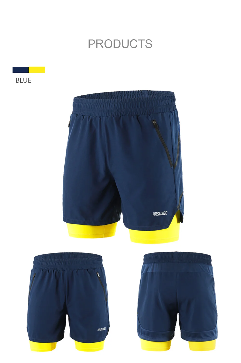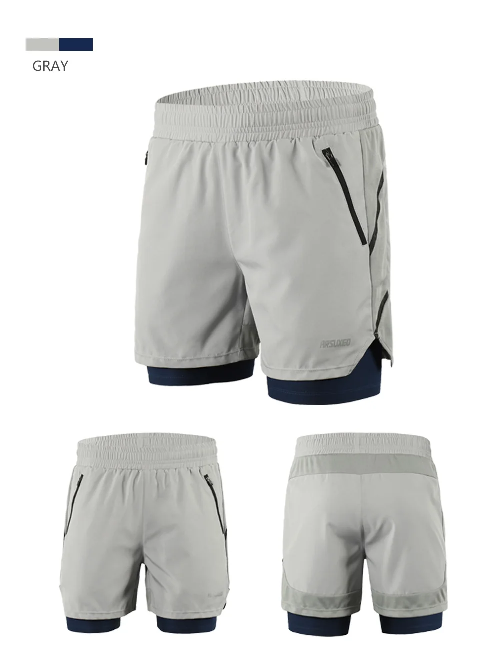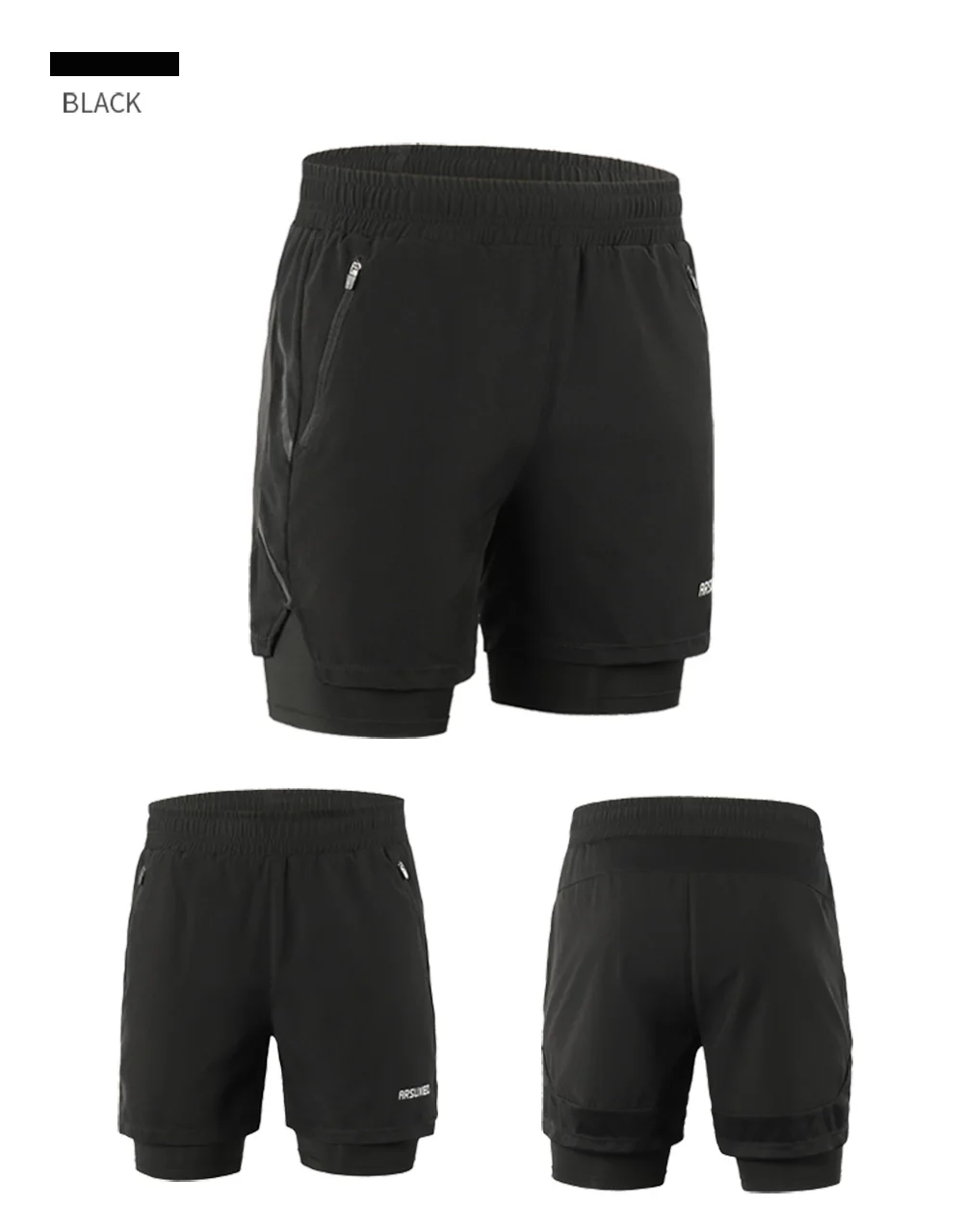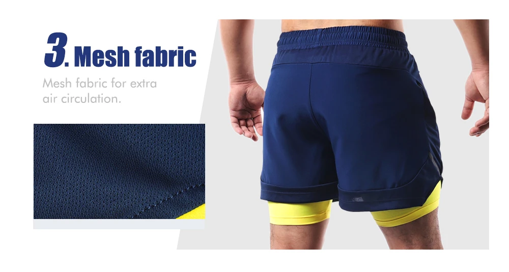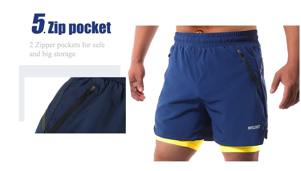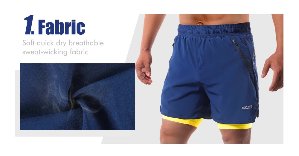 Мужские шорты для бега ARSUXEO, 2 в 1, спортивные дышащие шорты для активного тренировок, быстросохнущие спортивные шорты для спортивного зала, B191, 2020