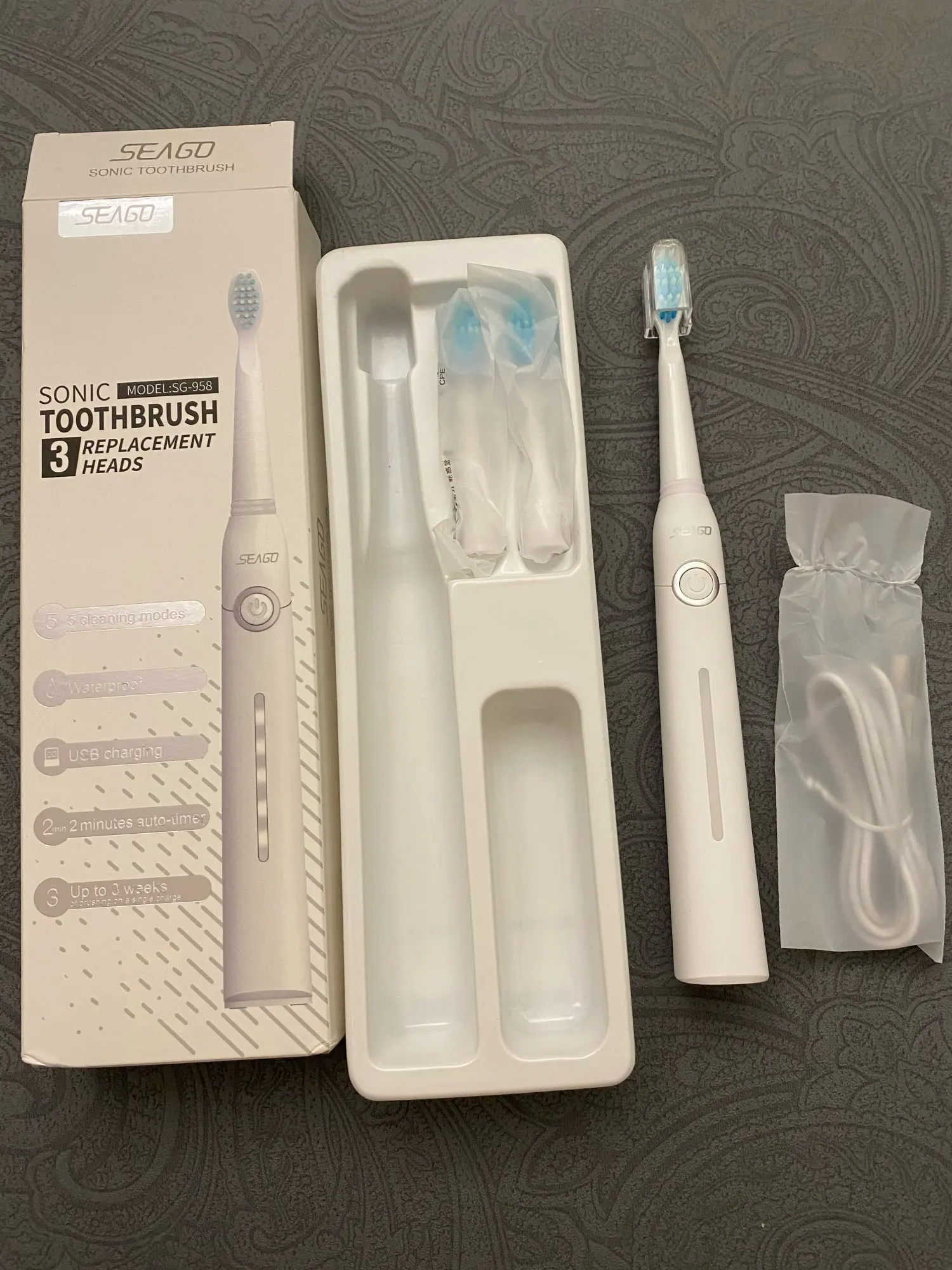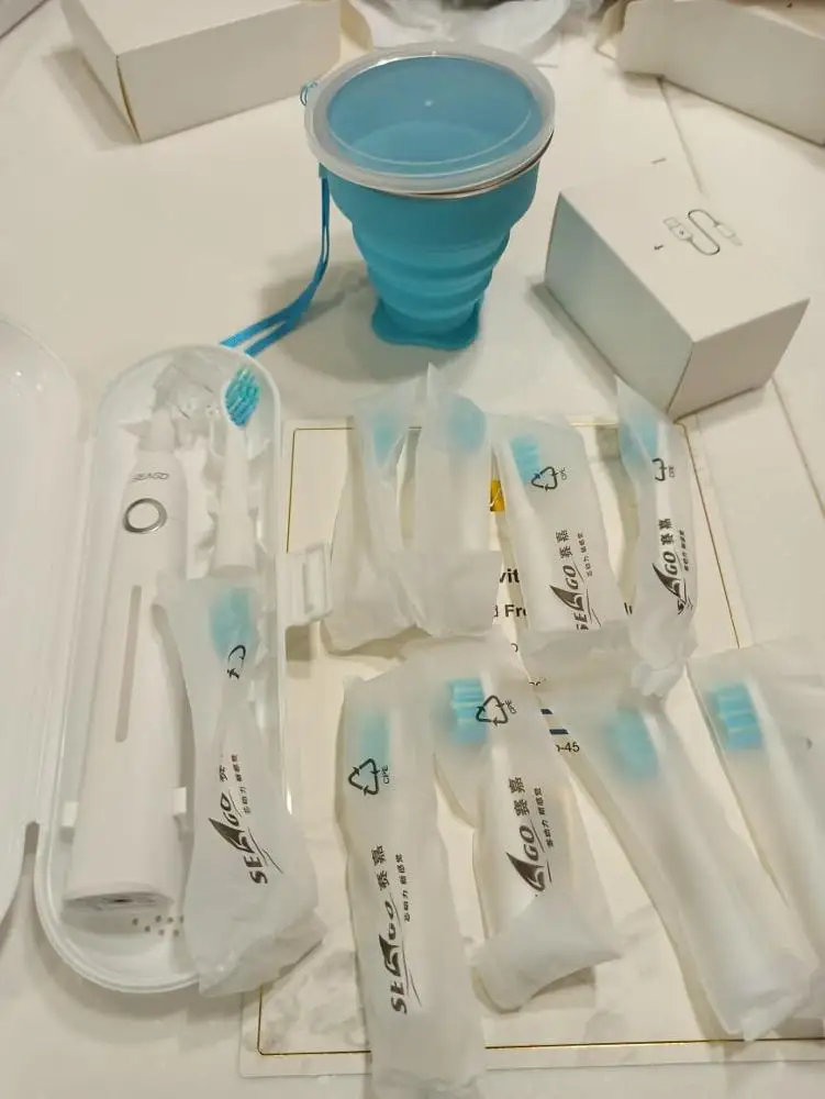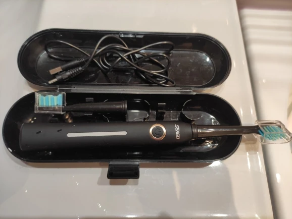 Заказывала за 1430₽ в распродажу. Пришло очень быстро! Все соответствует описанию. Это моя третья щетка фирмы SEGO. Первая до сих пор работает отлично! Брала ещё детскую на батарейках, тоже работает. Бонусом положили ещё 4 сменные насадки, итого 14 насадок получилось, за это спасибо, хватит надолго! Но косяк все же один есть, в контейнере отломался кусочек из-за чего теперь щетка в нем болтается(