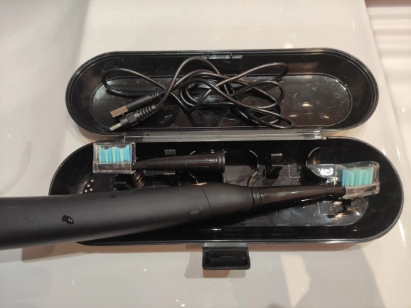 Доставка оперативная, упаковано в фирменную коробку, получили без повреждений. Щётка рабочая, чистит нормально, свою функцию выполняет. В комплекте нет зарядки, только провод. Запасных наконечников приличное количество, хватит надолго. Пластиковая коробка/бокс удобна для хранения и транспортировки.