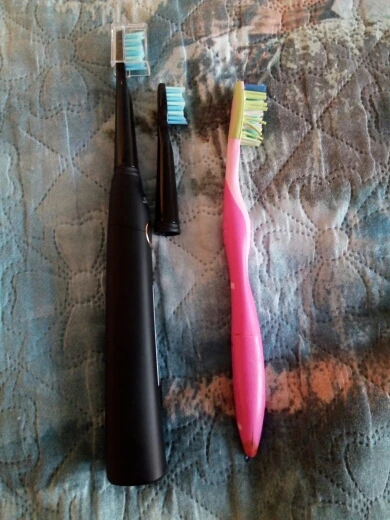 отличная зубная щетка, пришла за 2 недели. курьер привез прямо домой. сравнивать не с чем, это первая подобная щетка, но явно чистит лучше обычной. остается долгое ощущение свежести. я довольна