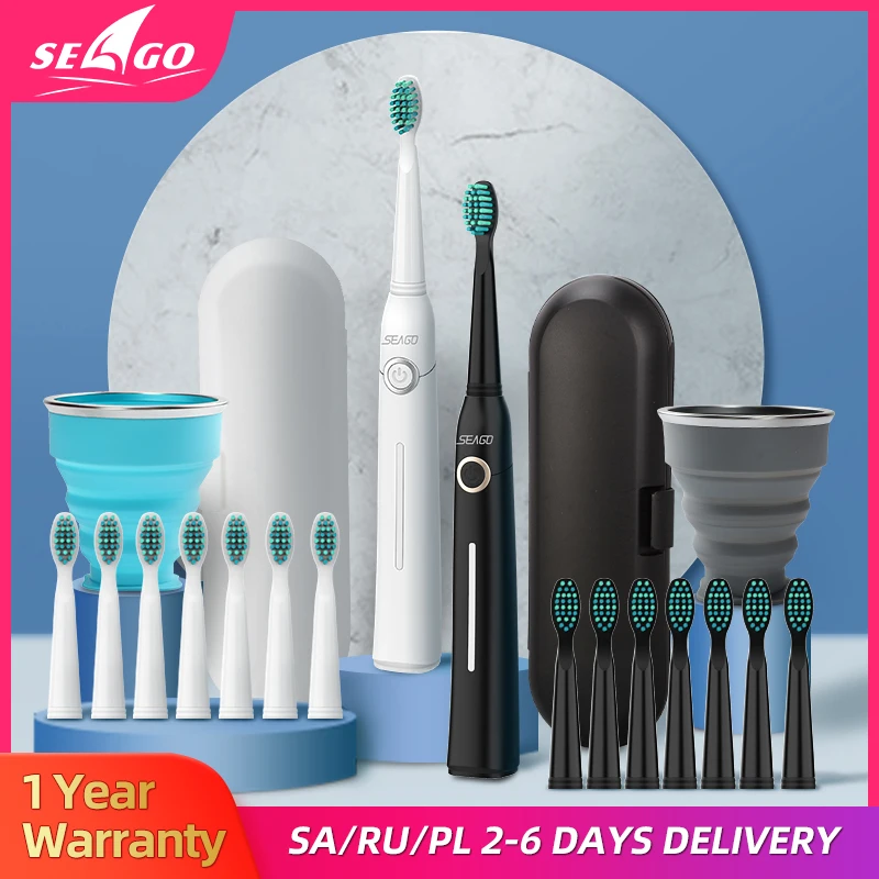 Seago Sonic Электрический Зубная щётка электрическая зубная щетка USB Перезаряжаемые взрослых Водонепроницаемый ультра sonic Автоматическая 5 Режим с Футляр Чехол