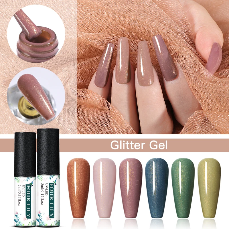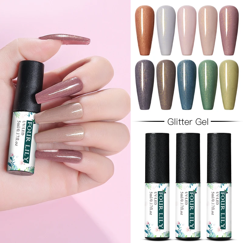 Четыре лилии Блестящий Гель-лак для ногтей голографическое мерцание длительный дизайн ногтей гель лак Блестящий замочить от УФ Гель-лак для маникюра