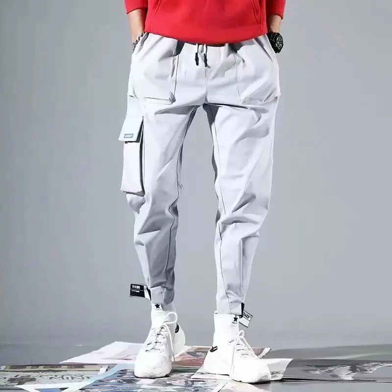 Джоггеры-шаровары с лентами, мужские брюки-карго, уличная одежда 20...
