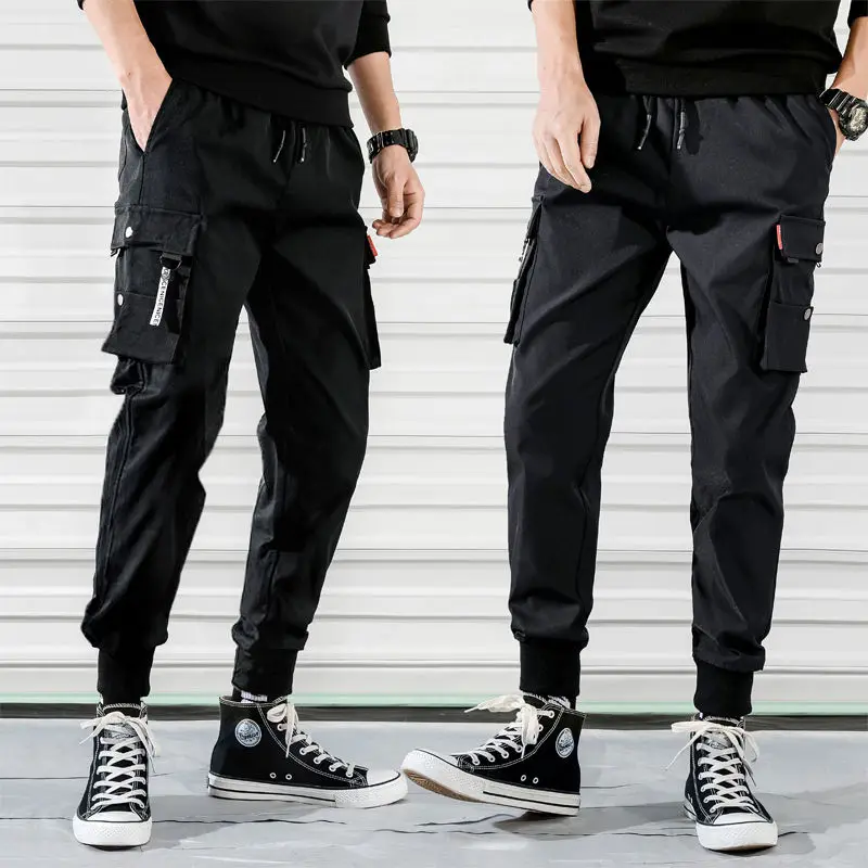 Брюки-карго мужские с несколькими карманами, уличная одежда, брюки-султанки в стиле панк, повседневные Джоггеры в стиле хип-хоп, черные