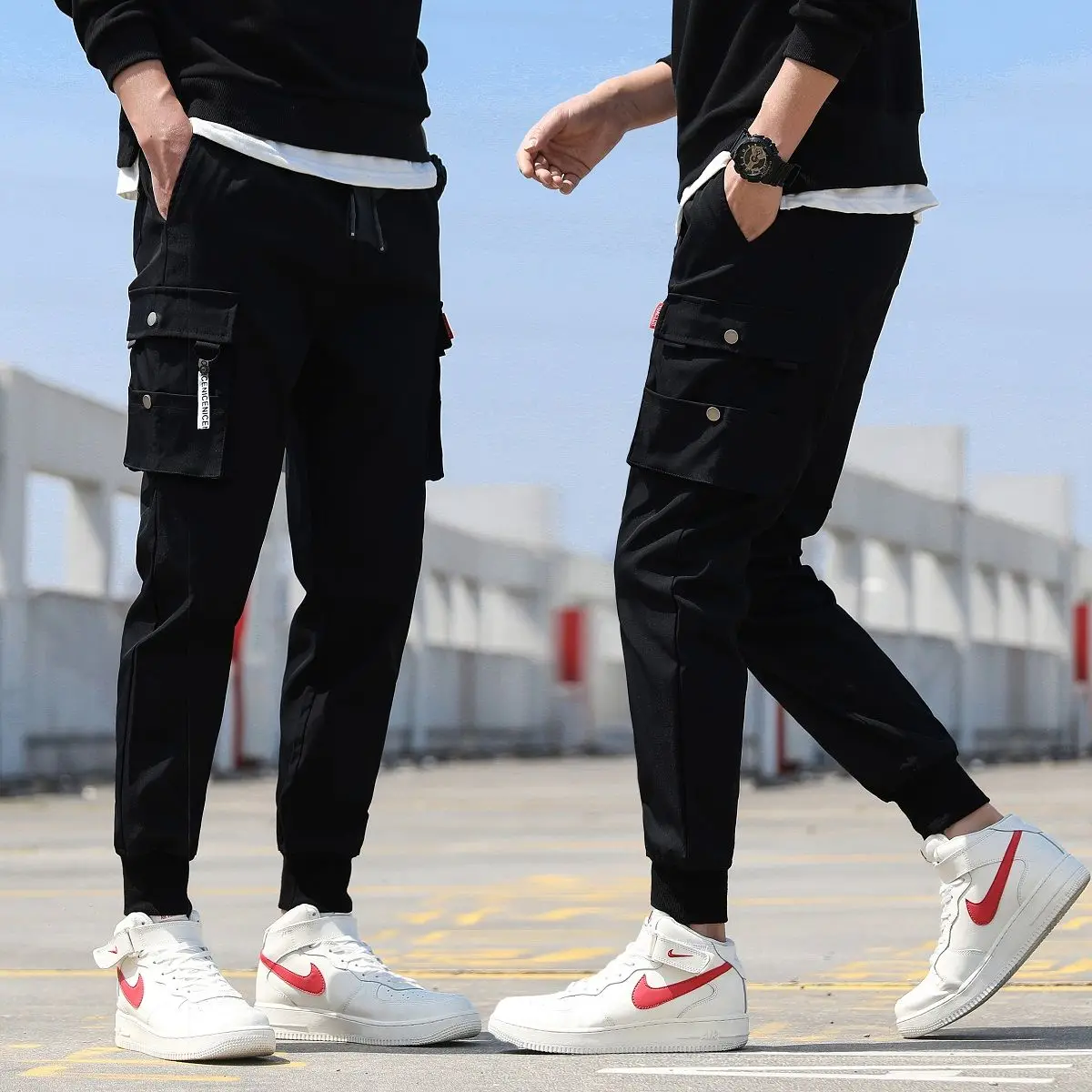 Брюки-карго мужские, черные, спортивные, в стиле Харадзюку