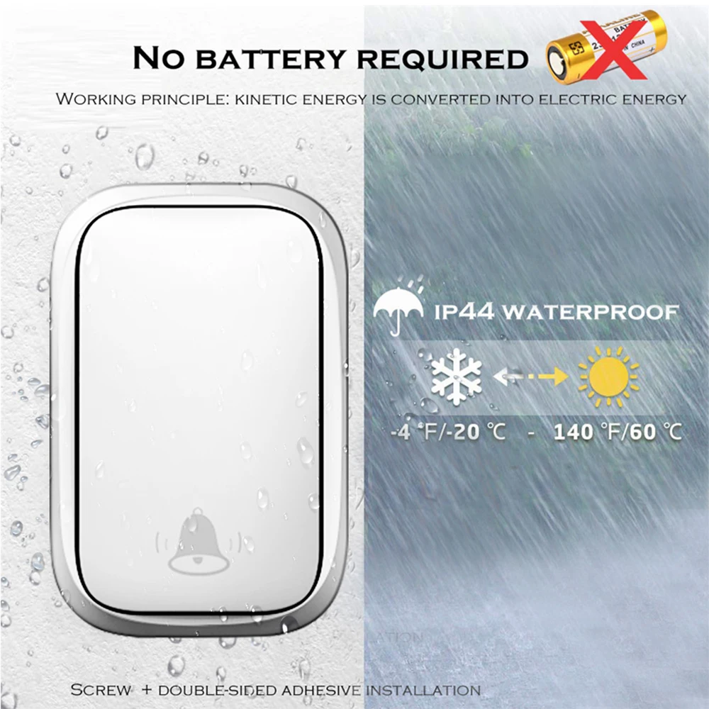 Водонепроницаемый беспроводной дверной звонок CACAZI, с автономным питанием, звонок для домашнего звонка, звонок без батареек, кнопка для США, Великобритании, Австралии, 150 м, дистанционное управление
