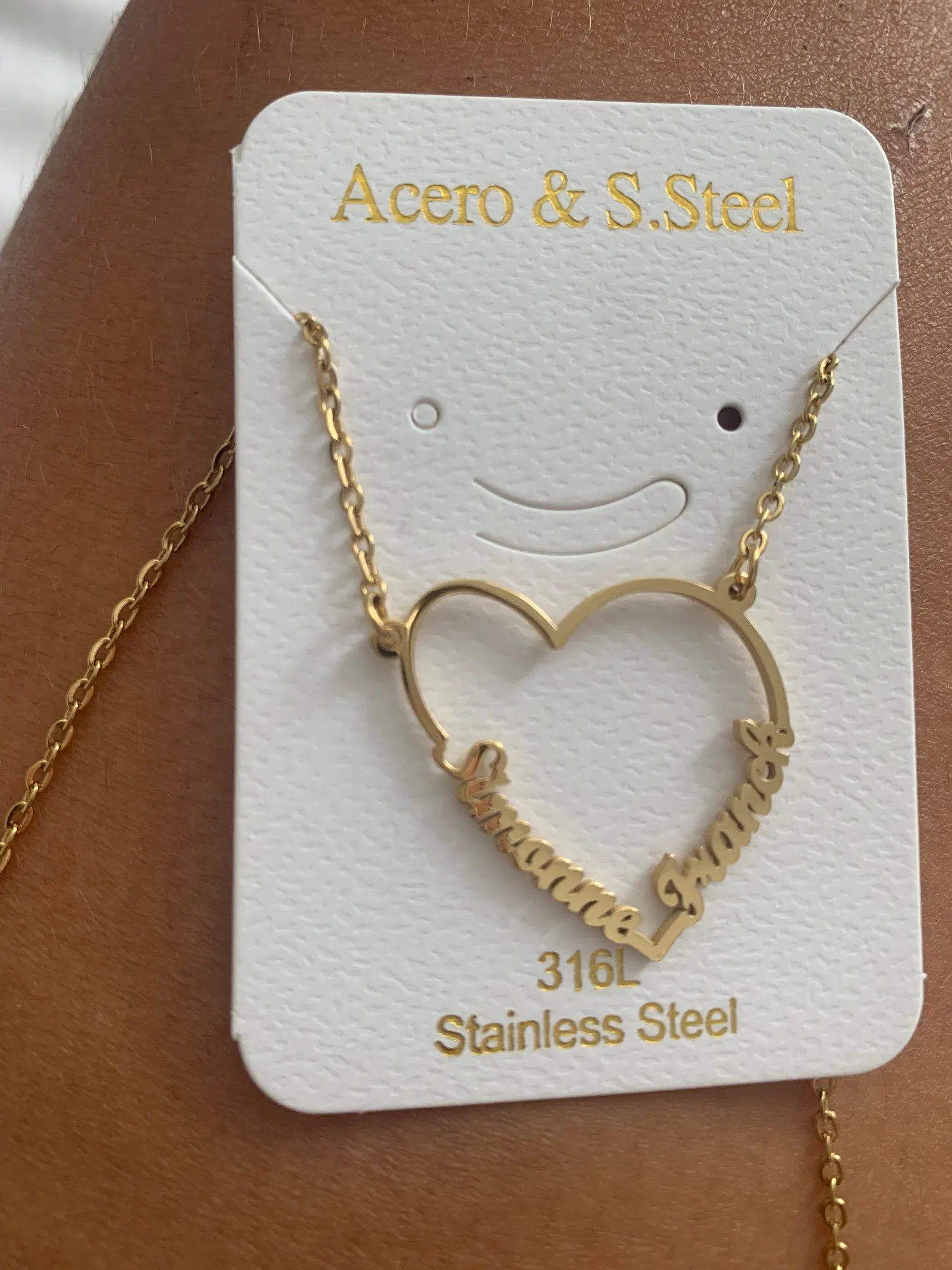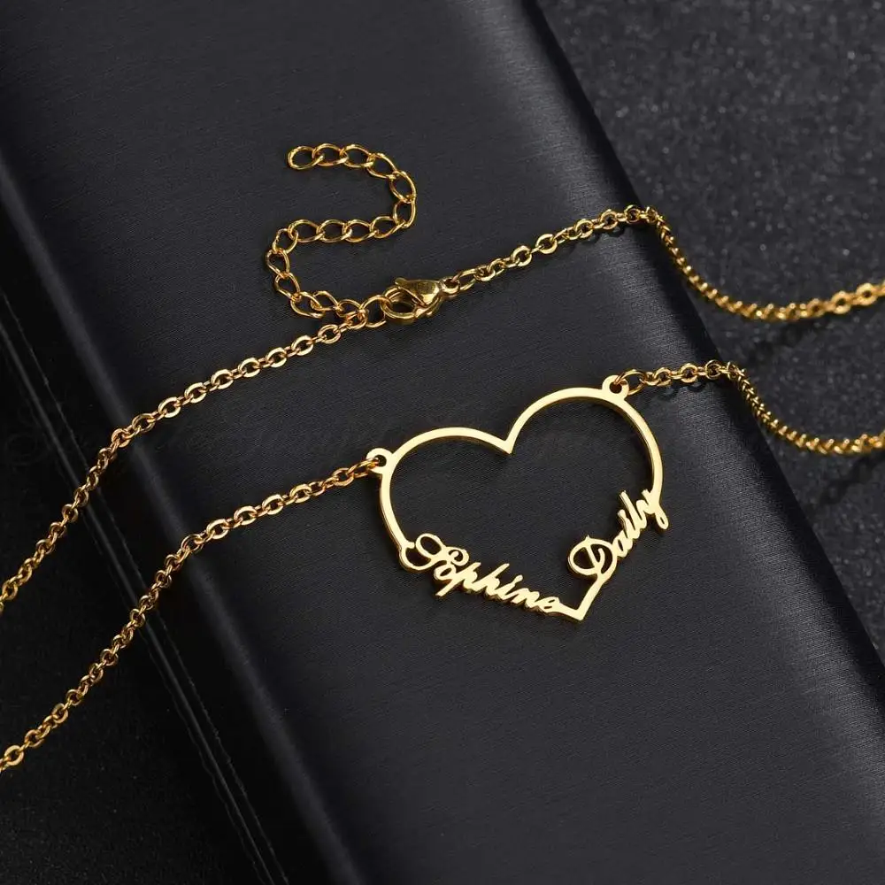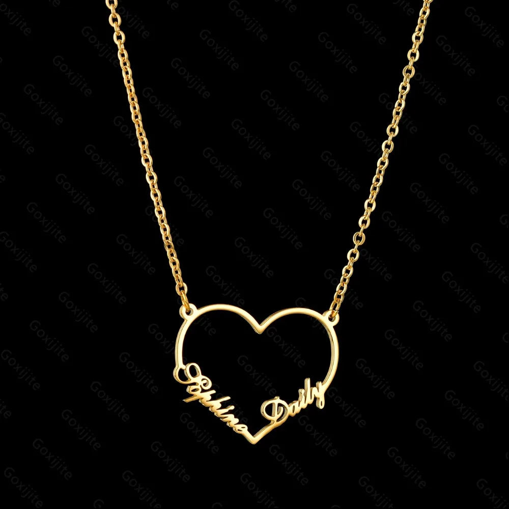 Ожерелье Goxijite женское, из нержавеющей стали, с двумя именами, в форме сердца, с золотыми буквами, подарок, 2019