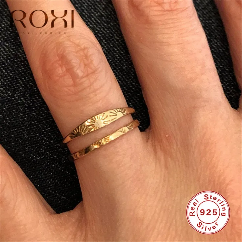 Изящное кольцо ROXI с солнцем, кольца из стерлингового серебра 925 пробы для женщин, штабелируемые кольца, серебряные ювелирные изделия 925 пробы, обручальные кольца
