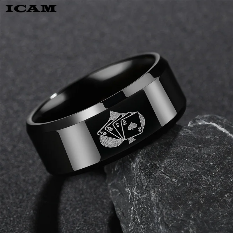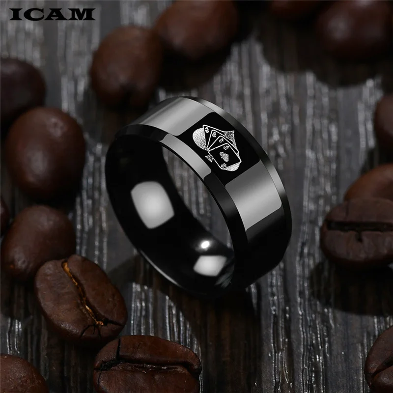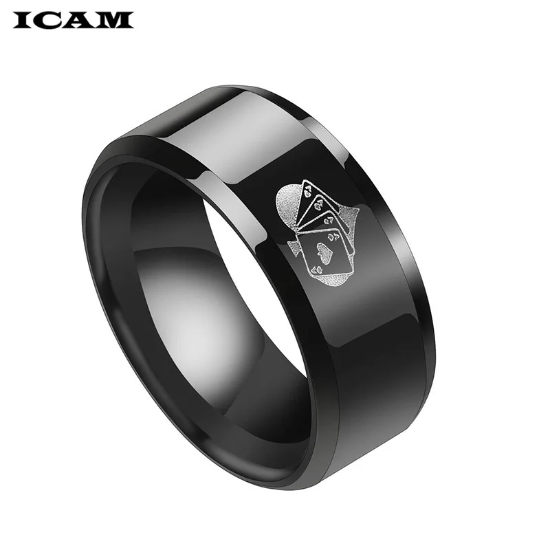 Мужское кольцо для покера ICAM, черное кольцо из нержавеющей стали с пиками, для покера, 2019
