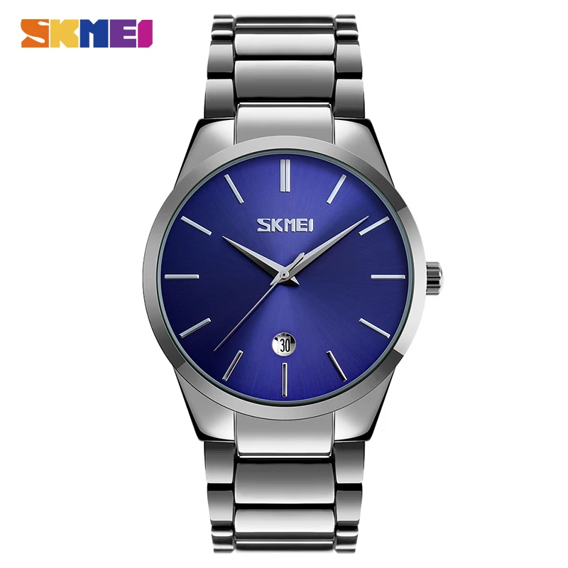 Часы SKMEI мужские Кварцевые водонепроницаемые, роскошные золотистые Стальные наручные, с браслетом, с датой, 2020