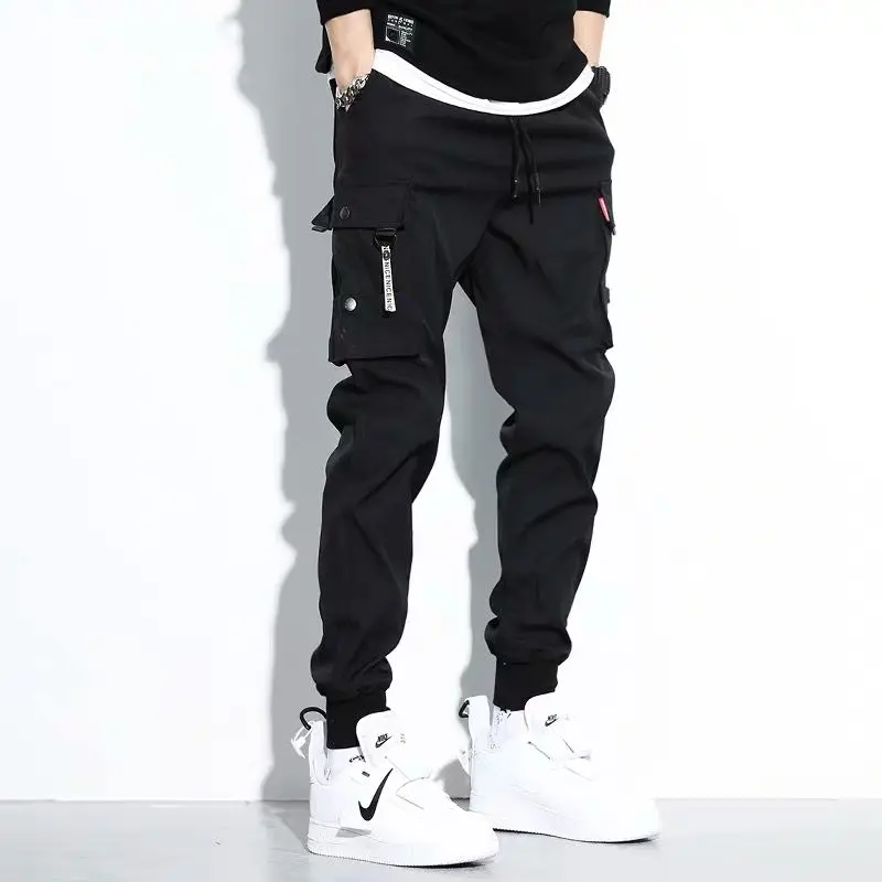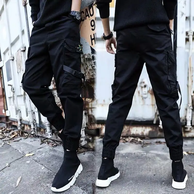 Брюки-карго мужские, черные, спортивные, в стиле Харадзюку