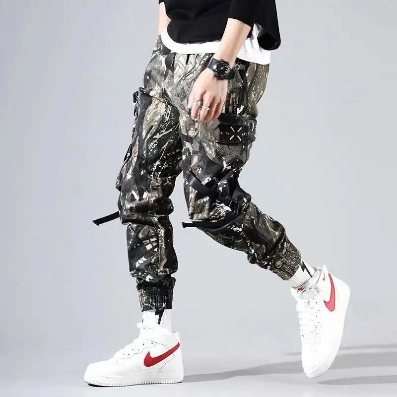 Мужские камуфляжные штаны для бега с боковыми карманами, свободные стильные мужские спортивные штаны, модные повседневные уличные брюки 2022