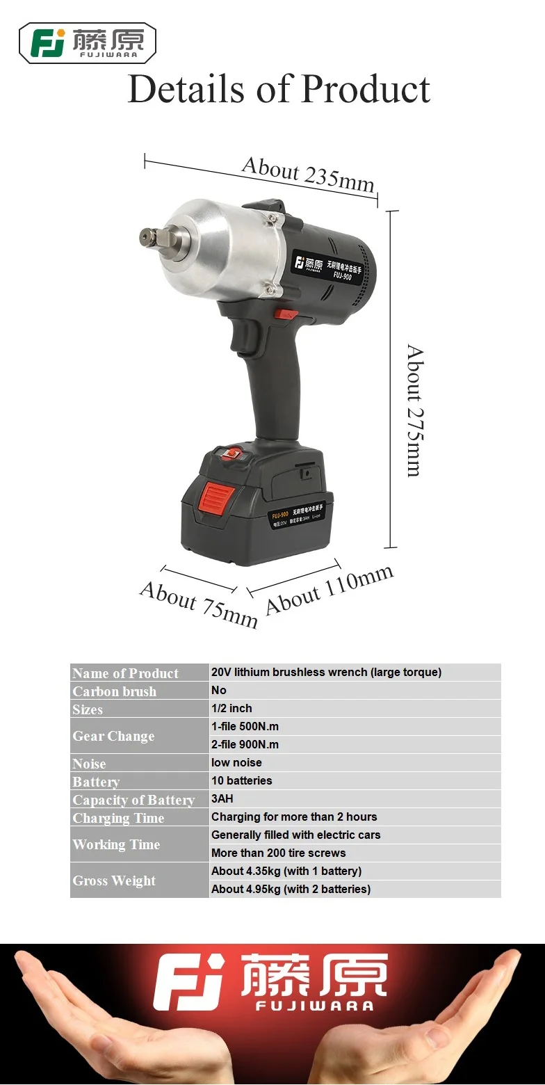 Гайковерт FUJIWARA 12 Н м, дюйма, 20 в, литиевый аккумулятор, бесколлекторный