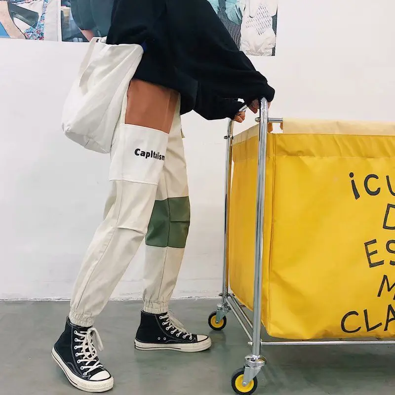 Хип-брюки, винтажные Цветные Лоскутные вельветовые брюки-карго в ст...