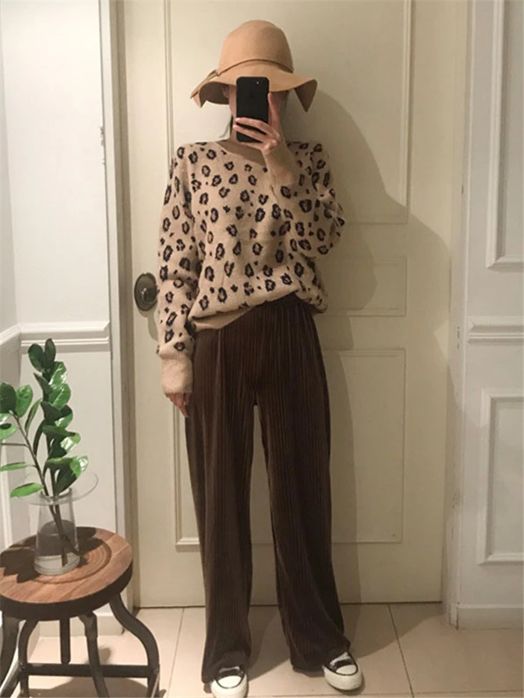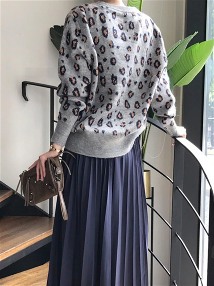 Свитер женский оверсайз с леопардовым принтом на осеньзиму, SW9539