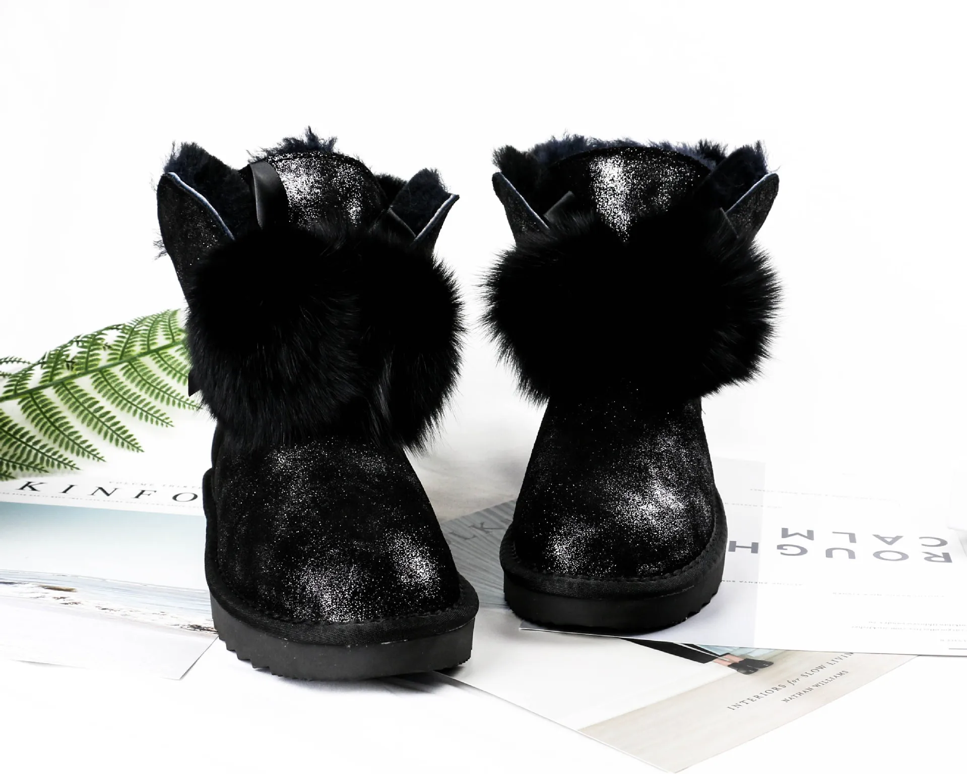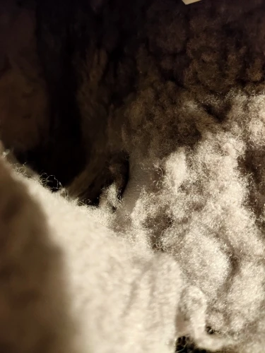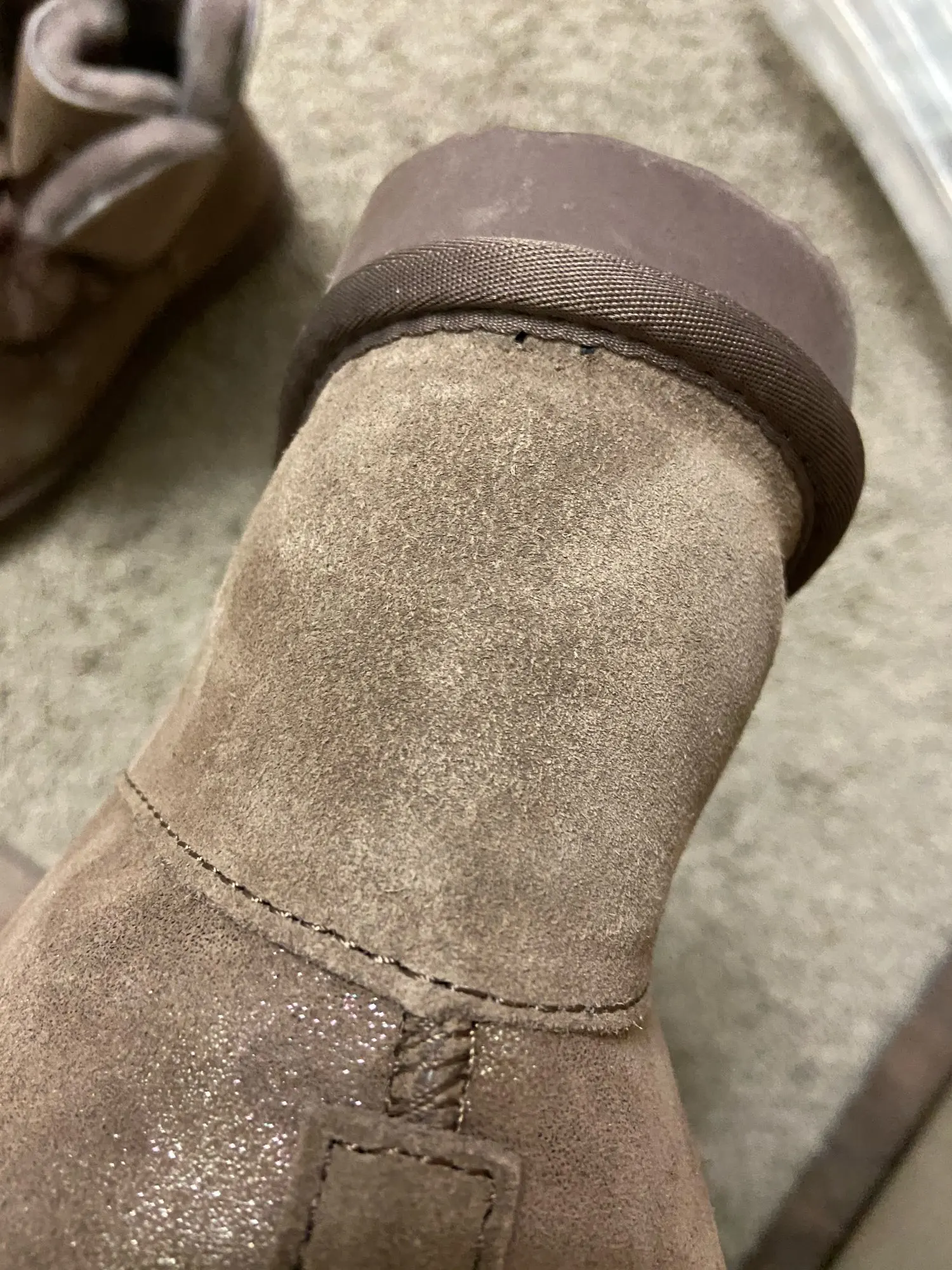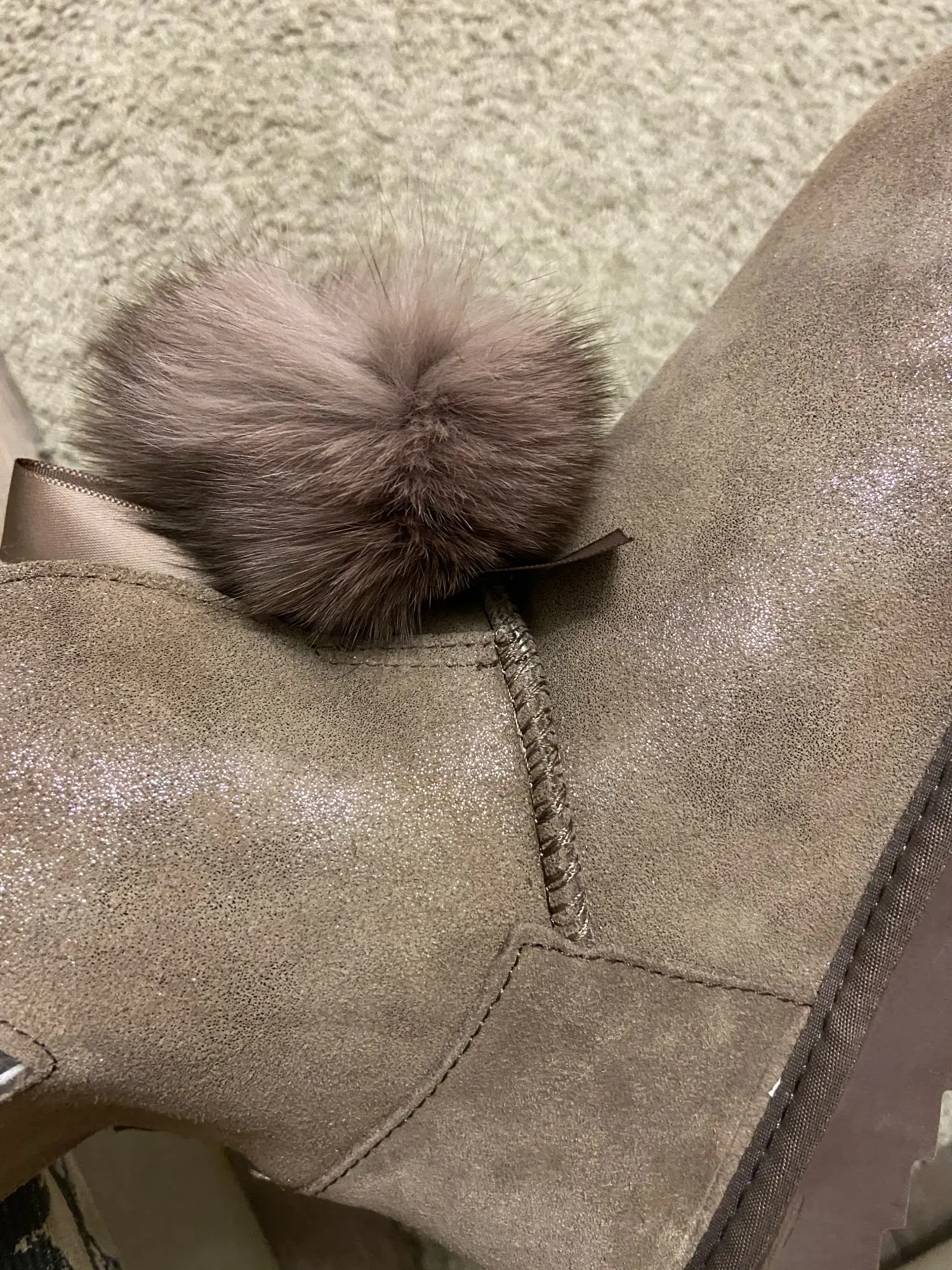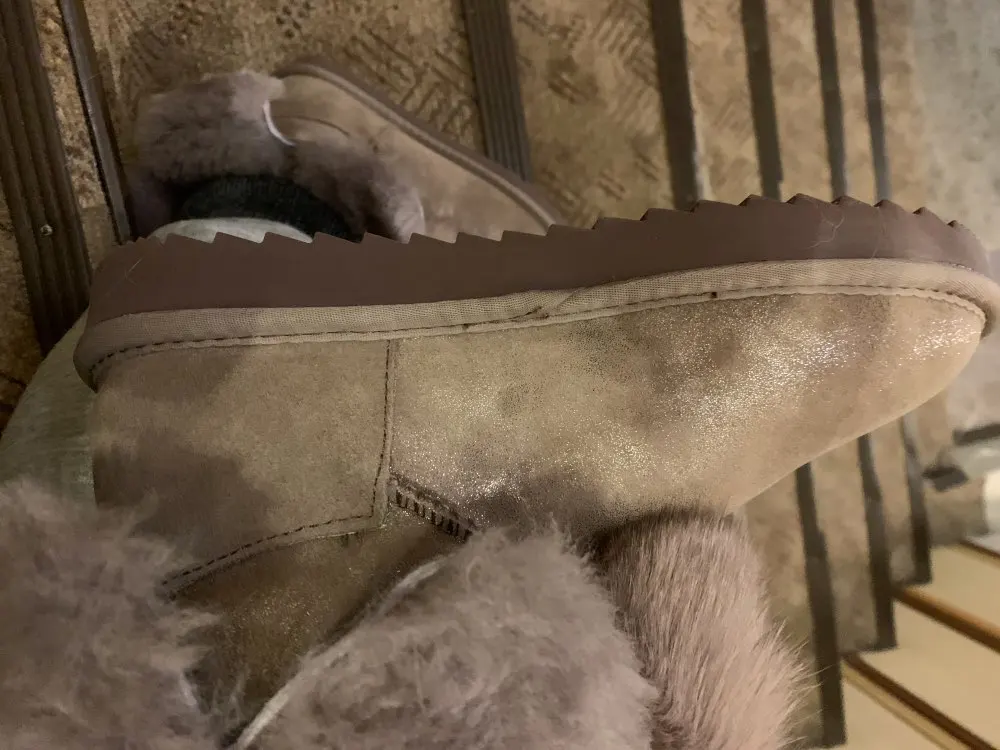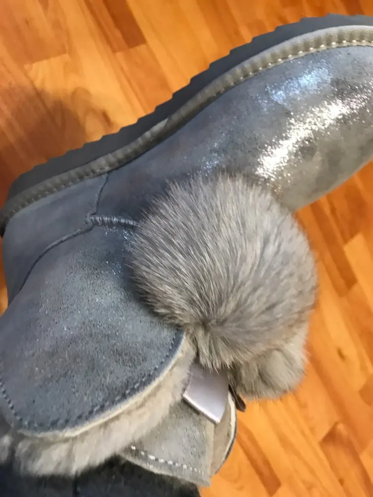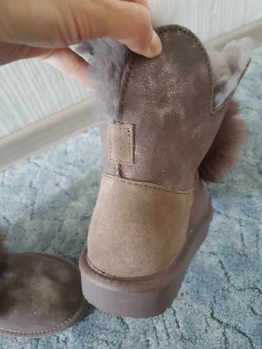 задняя часть сапожек замша без напыления отличаеться от цвета впереди. мех внутри сапожек вылазит.