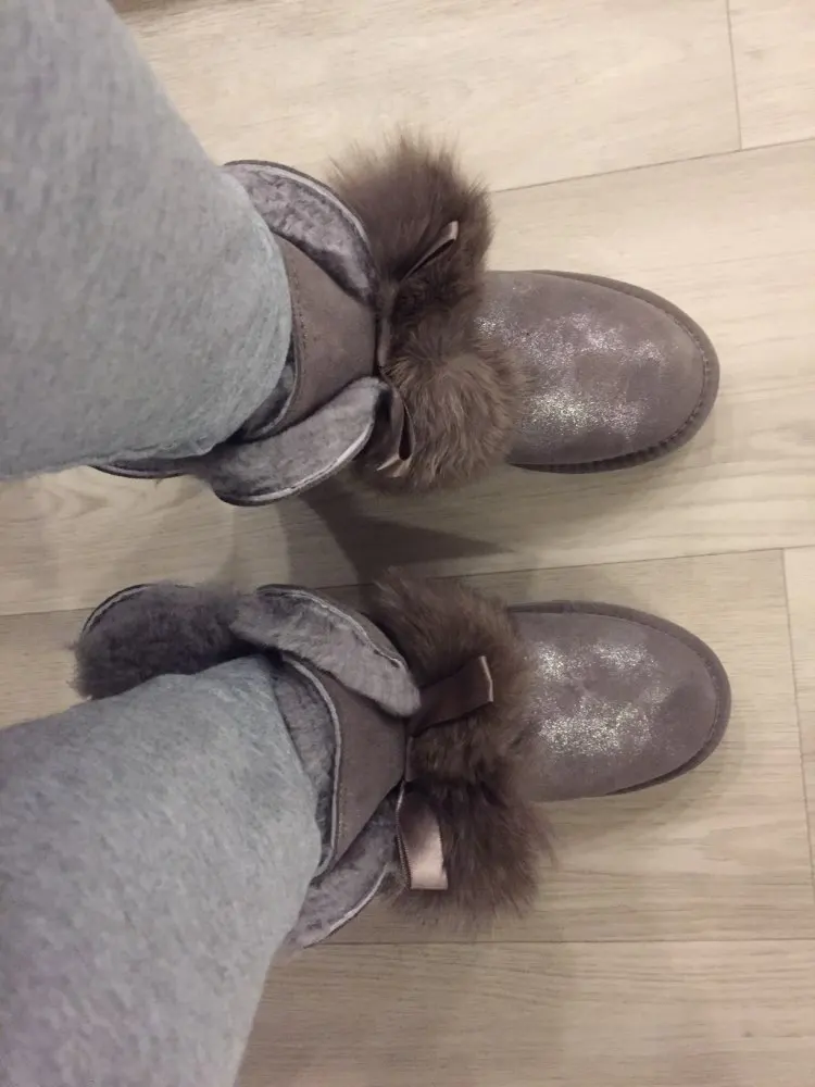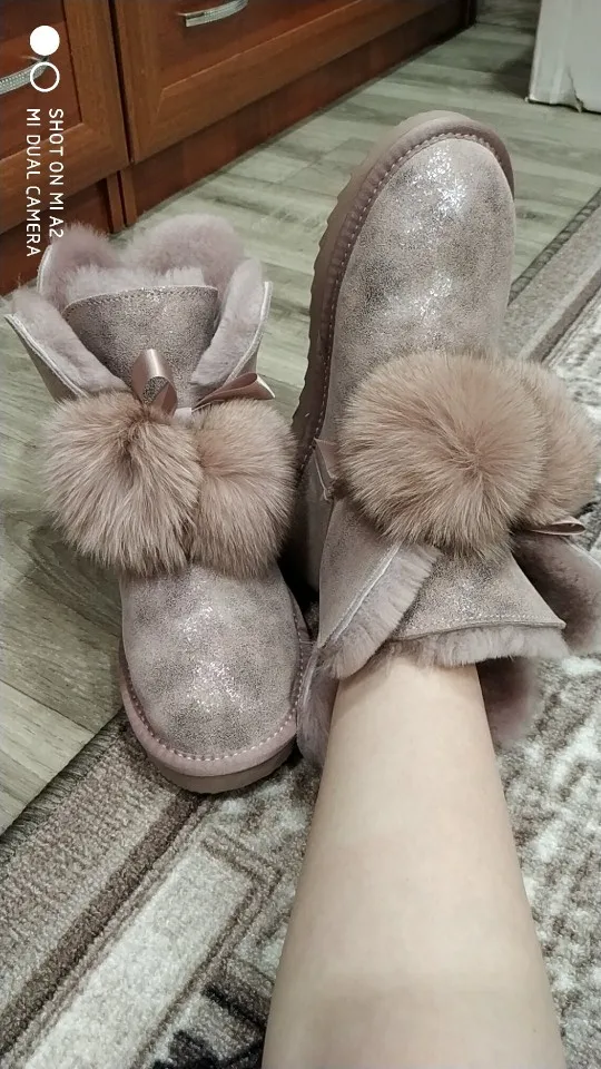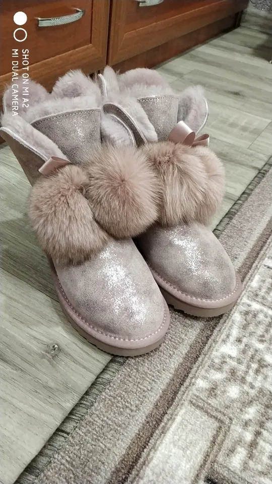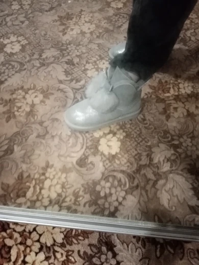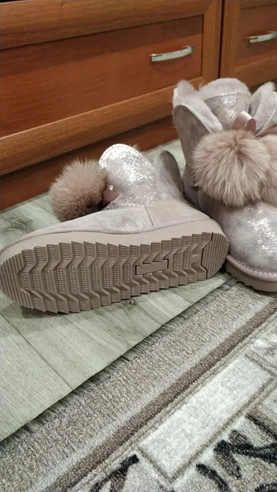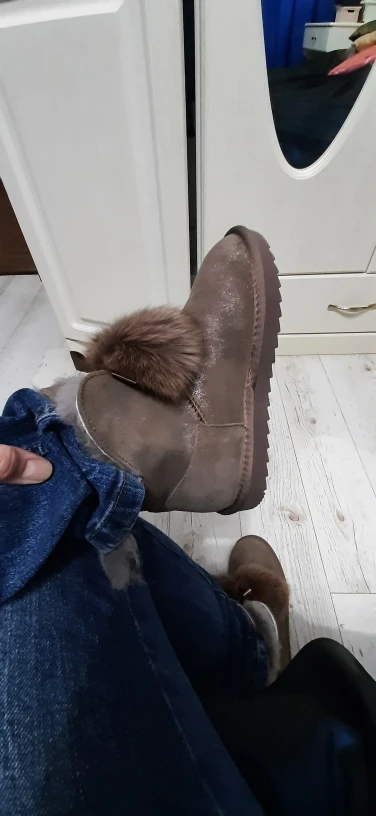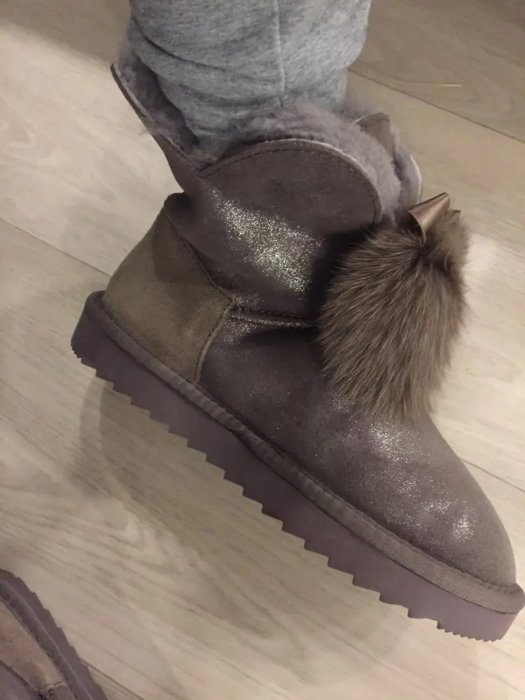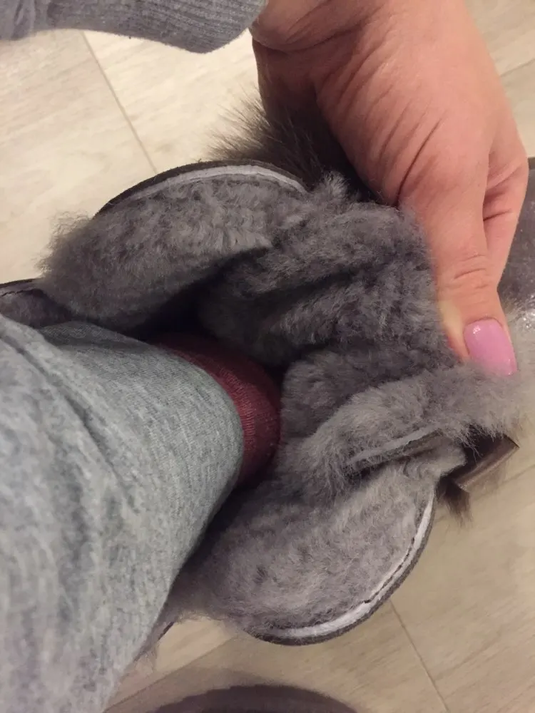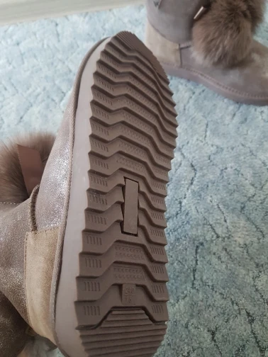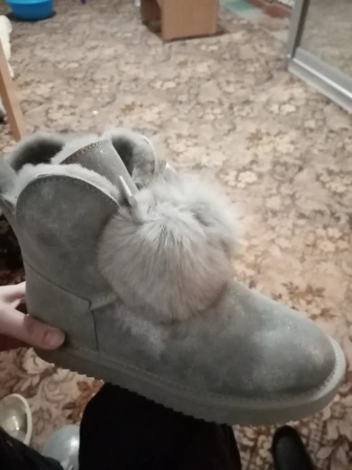 Заказала 38 размер(мой размер), все подошло, немного цвет серый не как на картинке(думала будет светлее), но внутри они прям мягкие, с ноги не спадывают, шарики для красоты из кролика, подошва резиновая(чему очень обрадовалась), она гнётся хорошо, на фото видно, немного пахнут, но думаю это из за блеска, который нанесён поверх замши (блеск серебристый)! Прошиты на внешний вид качественно, нитки не торчат, ногу не давит, одела с тёплым носком! Вообще довольна покупкой, не пожалела, что за 3450р купила (была скидка продавца-стоили 3550р) Доставка неожиданно быстрая до Верхней Салды (Свердловская область)