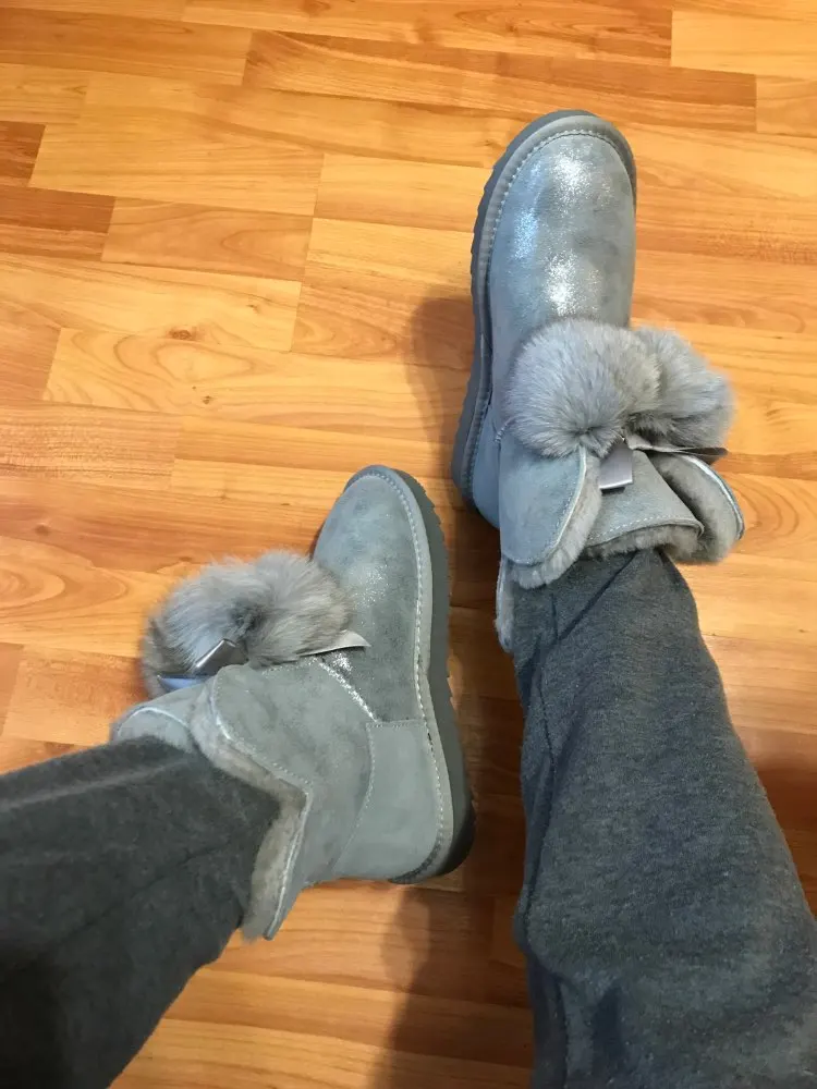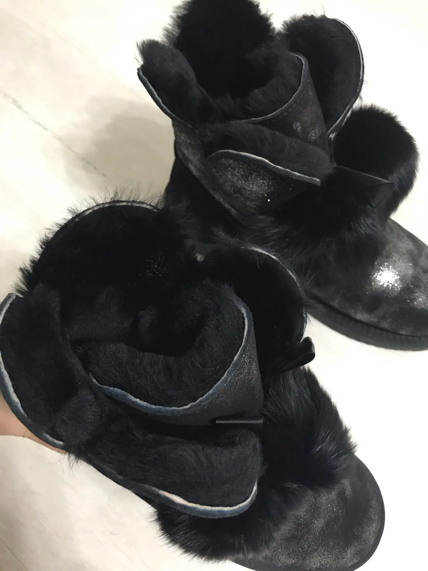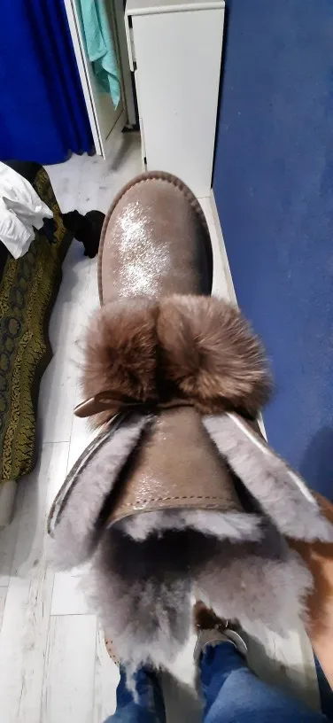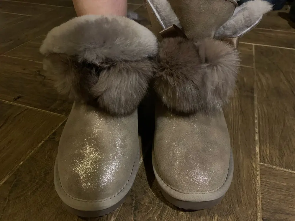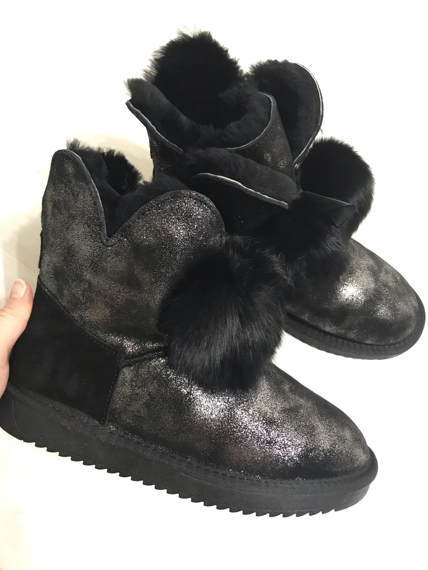 Заказала 38 размер(мой размер), все подошло, немного цвет серый не как на картинке(думала будет светлее), но внутри они прям мягкие, с ноги не спадывают, шарики для красоты из кролика, подошва резиновая(чему очень обрадовалась), она гнётся хорошо, на фото видно, немного пахнут, но думаю это из за блеска, который нанесён поверх замши (блеск серебристый)! Прошиты на внешний вид качественно, нитки не торчат, ногу не давит, одела с тёплым носком! Вообще довольна покупкой, не пожалела, что за 3450р купила (была скидка продавца-стоили 3550р) Доставка неожиданно быстрая до Верхней Салды (Свердловская область)