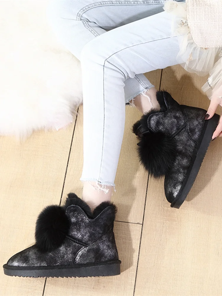 Женские ботинки из натуральной кожи G Zaco, теплые зимние ботинки из коровьей кожи на овечьем меху, на плоской подошве