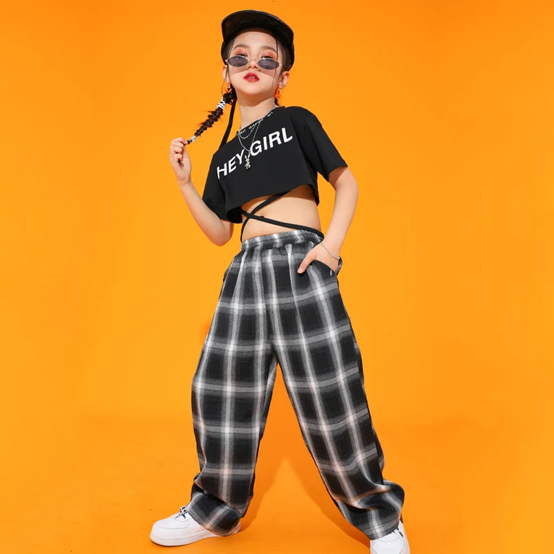 Детский костюм в стиле хип-хоп, короткие топы для девочек, искусственная джазовая уличная одежда, уличная танцевальная одежда, костюм для выступления на сцене BI038