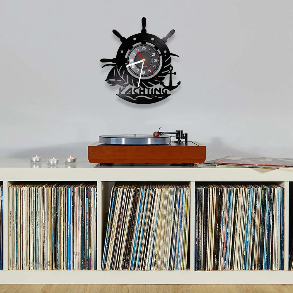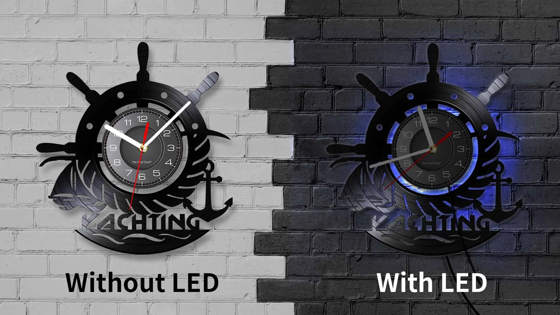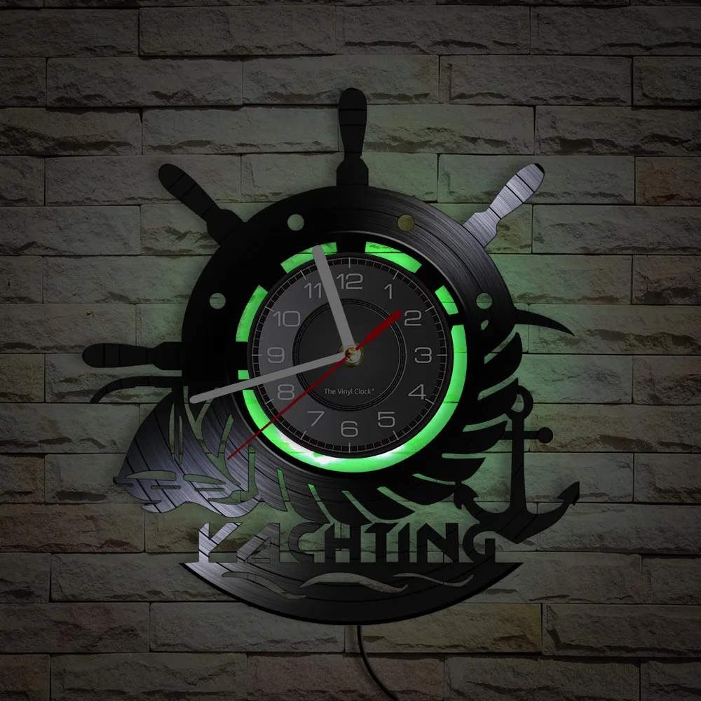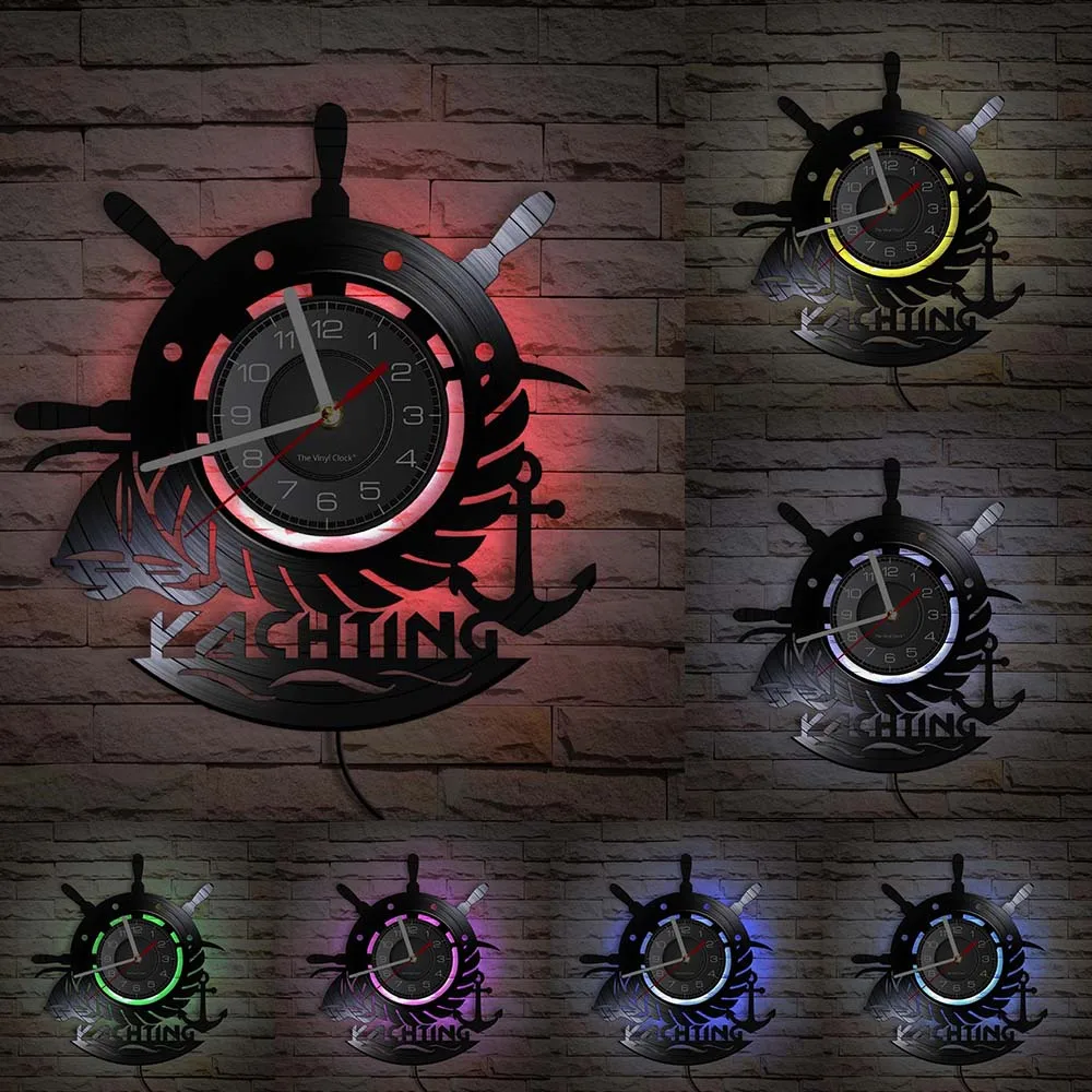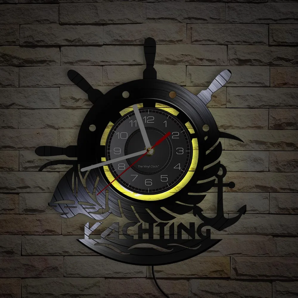 Морской якорь моряки 3D Виниловые пластинки часы яхтсмэн светодиодный настенный светильник украшение для гостиной морской пейзаж подарок