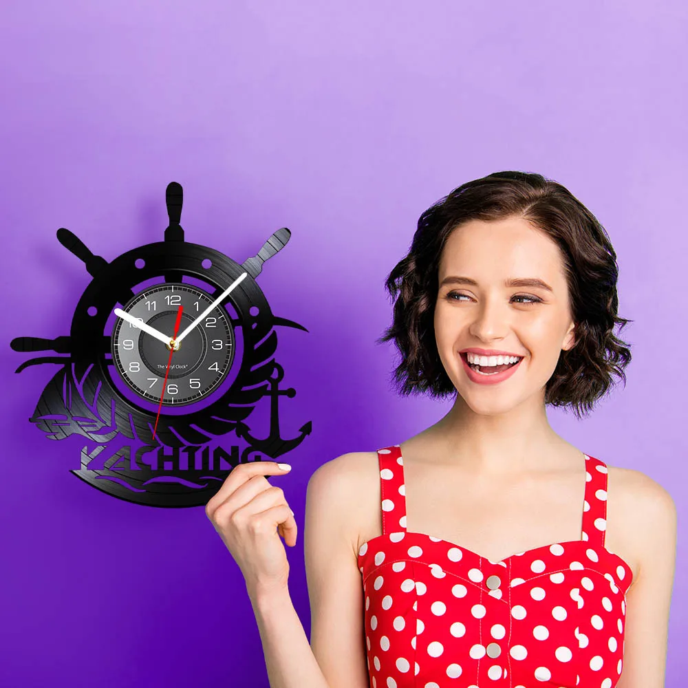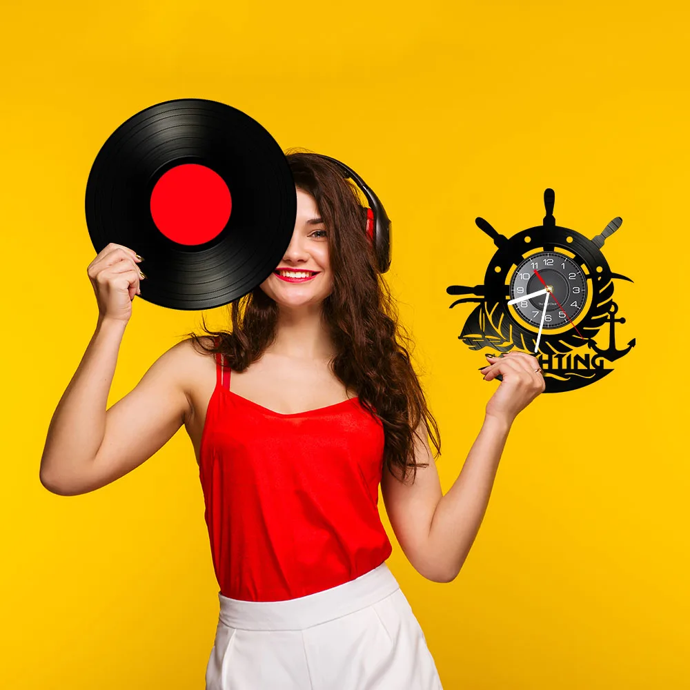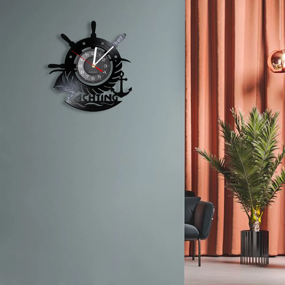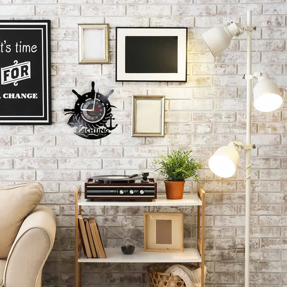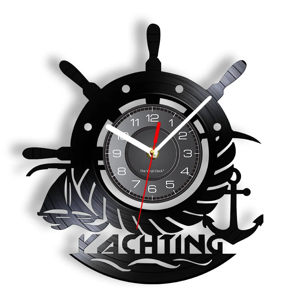 Морской якорь моряки 3D Виниловые пластинки часы яхтсмэн светодиодный настенный светильник украшение для гостиной морской пейзаж подарок
