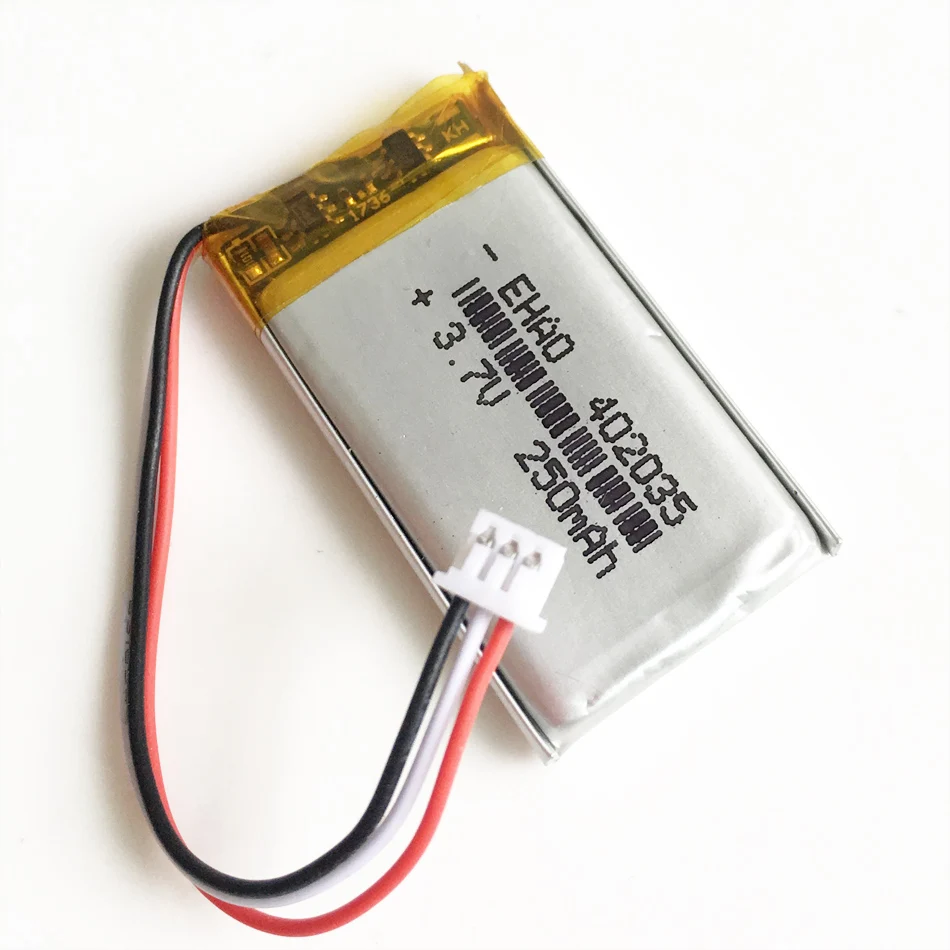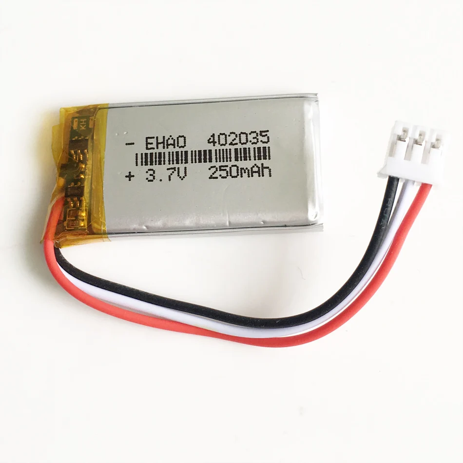 3,7 V 250mAh 402035 с JST 3pin разъем литиевая полимерная аккумуляторная батарея Lipo для MP3 MP4 GPS bluetooth гарнитура видеоручка
