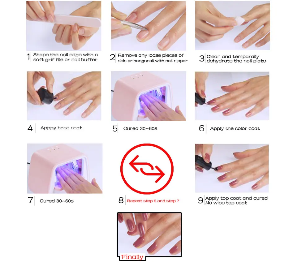 * Относится к УФ/светодиодный Гель-лак для ногтей, он должен быть вылечен УФ/светодиодный лампой.