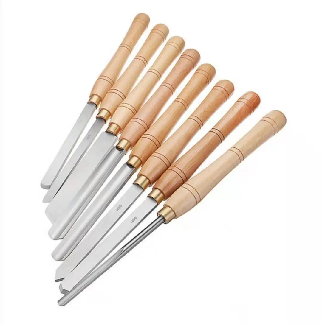 Высокоскоростной стальной токарный станок ALLSOME HT2864, инструменты для токарной обработки древесины, с деревянной рукояткой, деревообрабатывающий инструмент, 8 типов, прочный