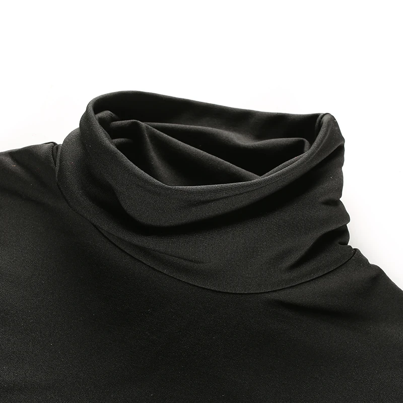 Женский черный Боди с длинным рукавом Осень Зима боди с высоким горлом женские Соблазнительные обтягивающие боди с высокой талией