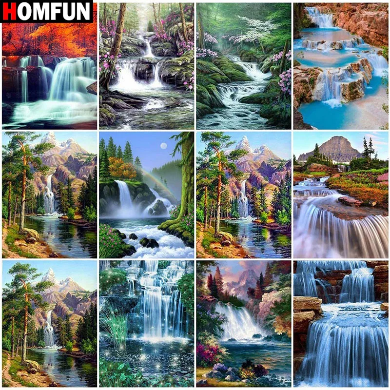 Картина из квадратных и круглых страз HOMFUN, 5D алмазная вышивка водопад, Горный пейзаж, украшение для дома