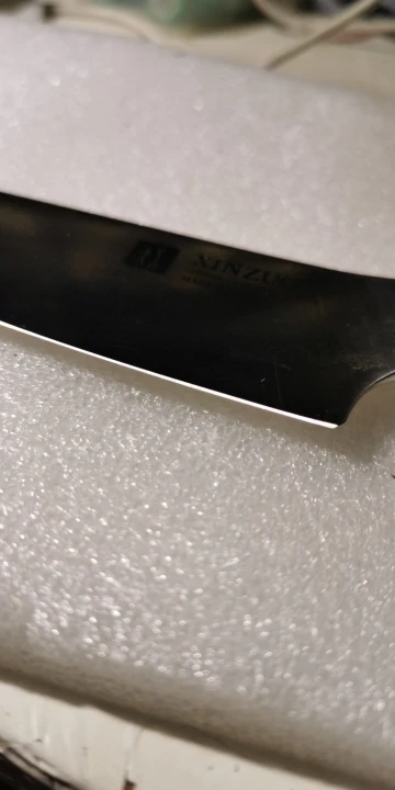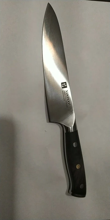 Изготовлен нож с любовью, приятно взять в руки, бритвенная заточка, хорошо отполирован, бумагу на весу, овощи, мясо режет как джедайский мечь, 133 мм лезвие, ручка как у Самуры с металлическим задником, держать удобно хотя она меньше чем у первого ножа, в общем Xinzuo на высоте. По качеству стали как держит заточку отпишусь позднее, первый нож у меня из стали 440С этой же фирмы - сравню.