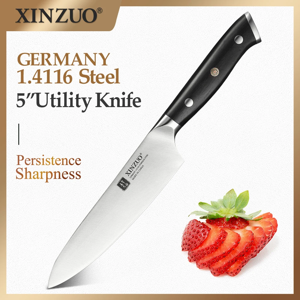 Универсальный нож XINZUO, 5 дюймов, из высокоуглеродистой нержавеющей стали, Германия, 1,4116, кухонные ножи, брендовый маленький нож, кухонные аксессуары