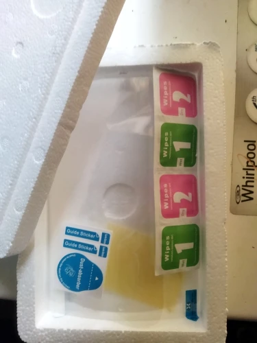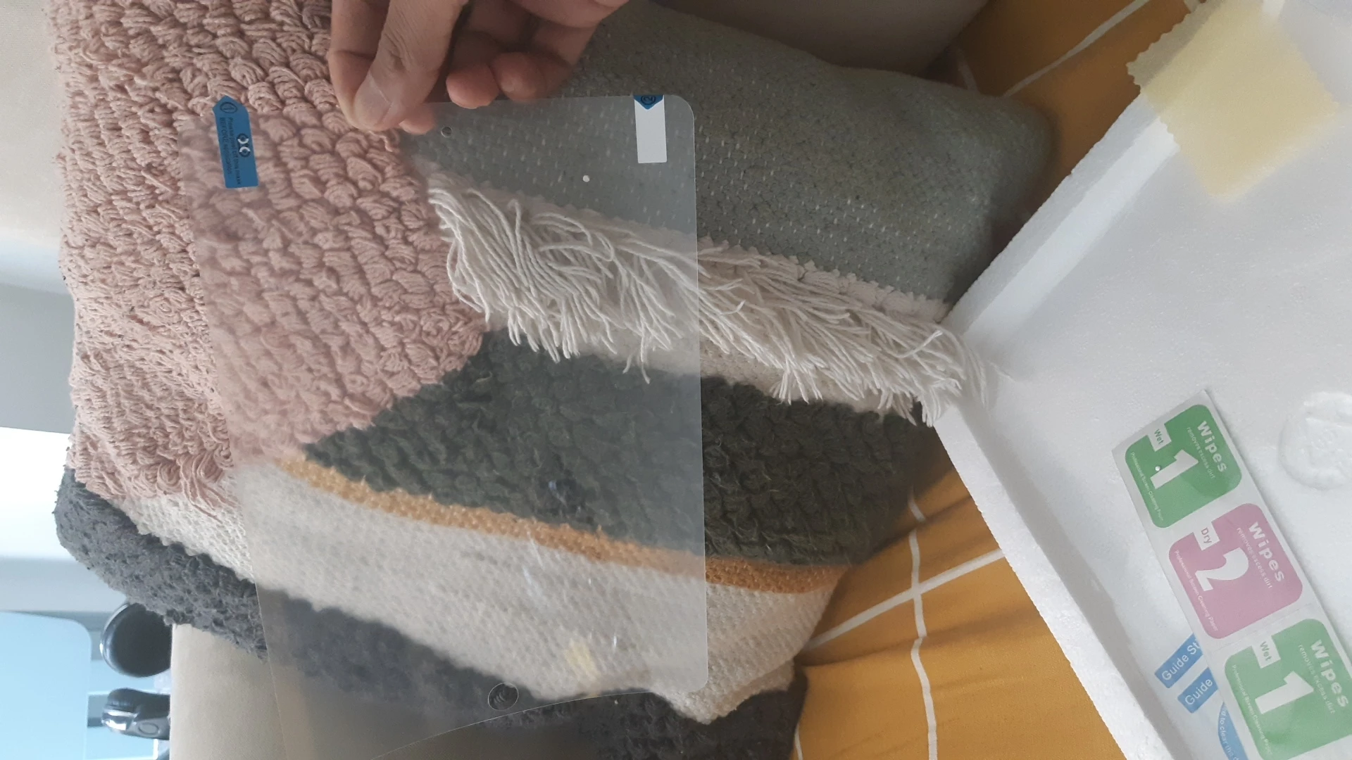 Между протектором и пластиком, который должен быть удален, было что-то белое, которое, когда я положил его на iPad, было похоже на пузырь, и внутри. Мне пришлось снова удалить его и удалить эти вещи, чтобы он прилипал, так что теперь у него есть пузырьки.